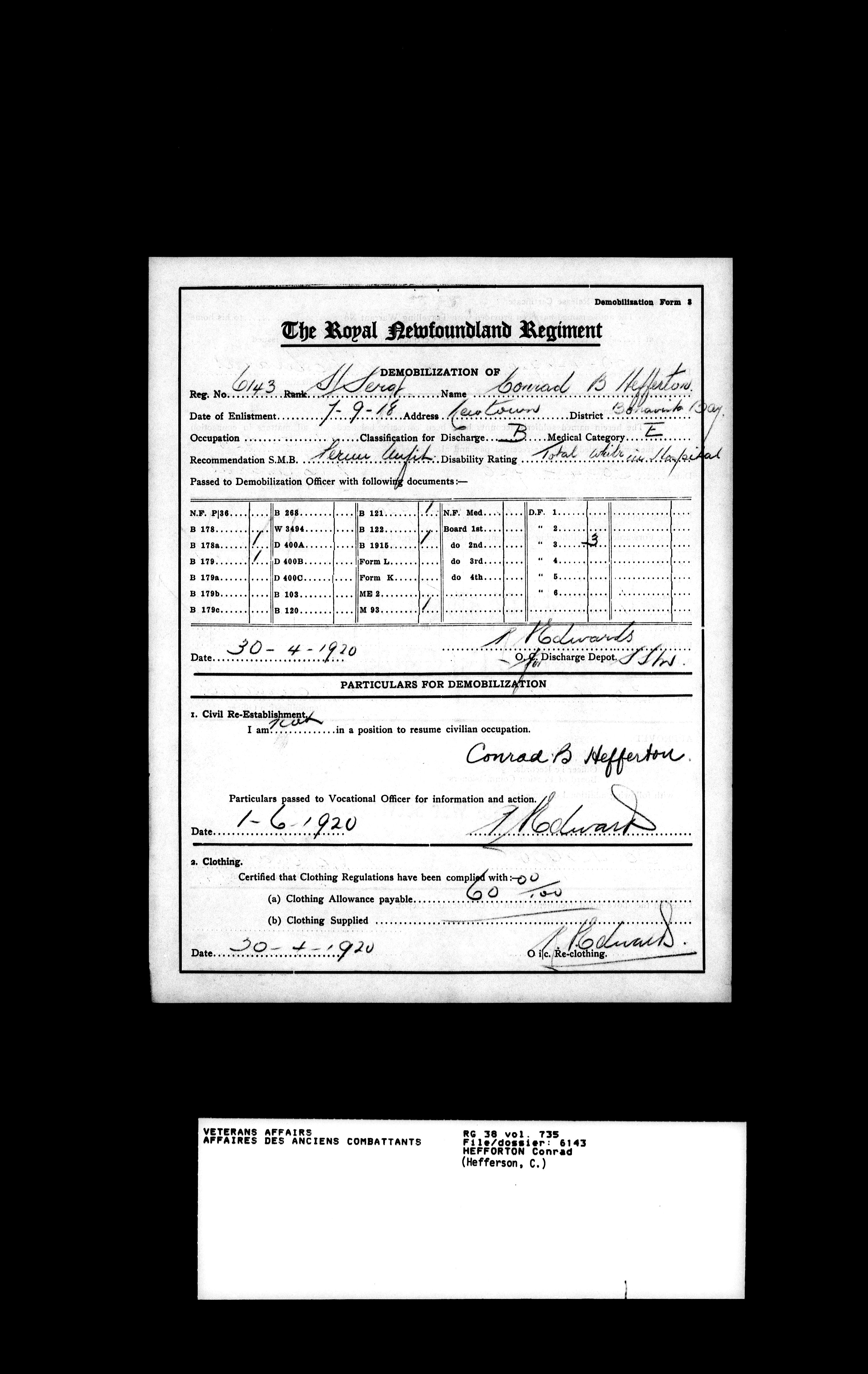 Military service files for members of the Royal Newfoundland Regiment and bandsmen and the Newfoundland Forestry Corps (1914-1919) - 18560