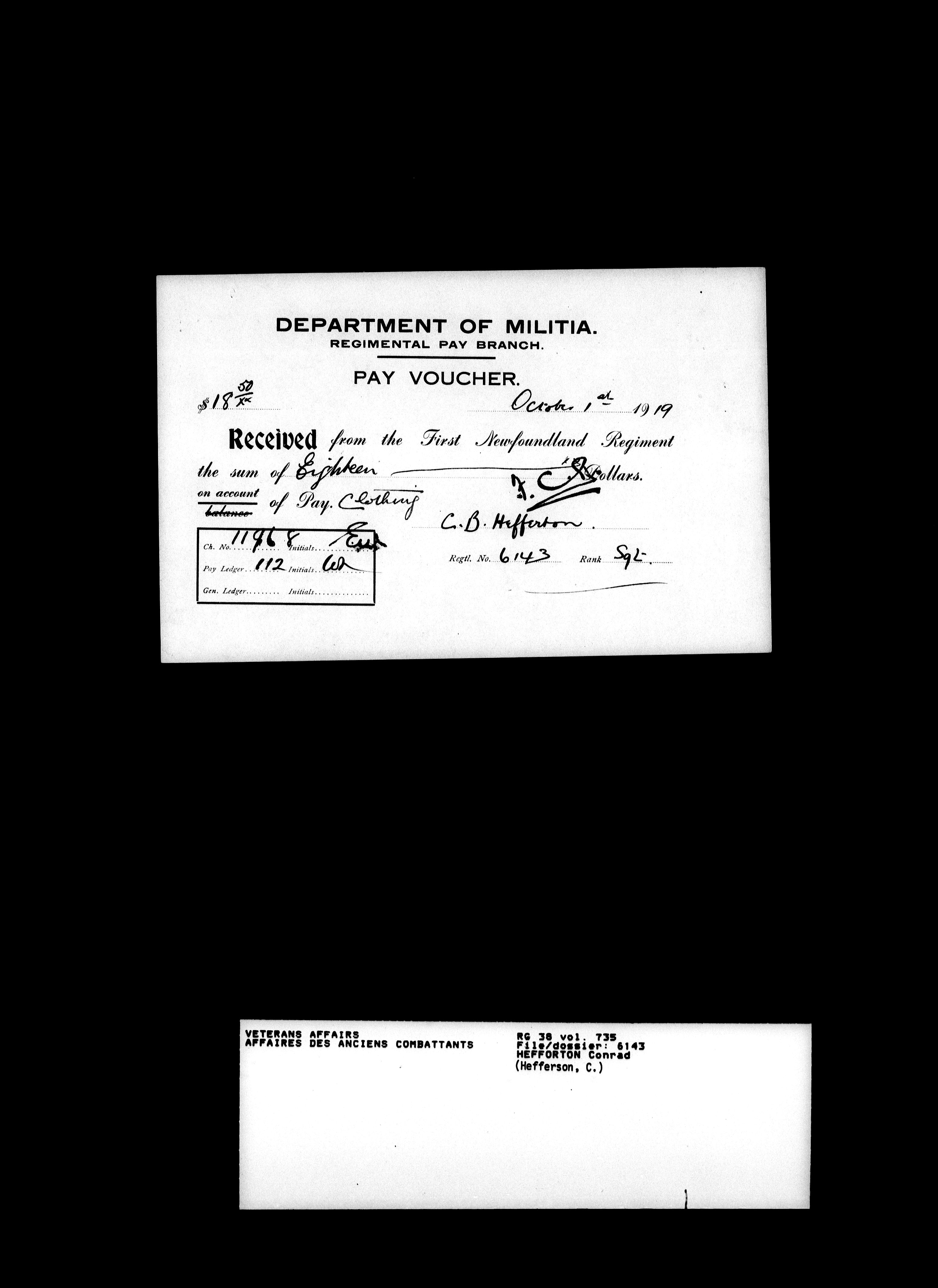 Military service files for members of the Royal Newfoundland Regiment and bandsmen and the Newfoundland Forestry Corps (1914-1919) - 18560