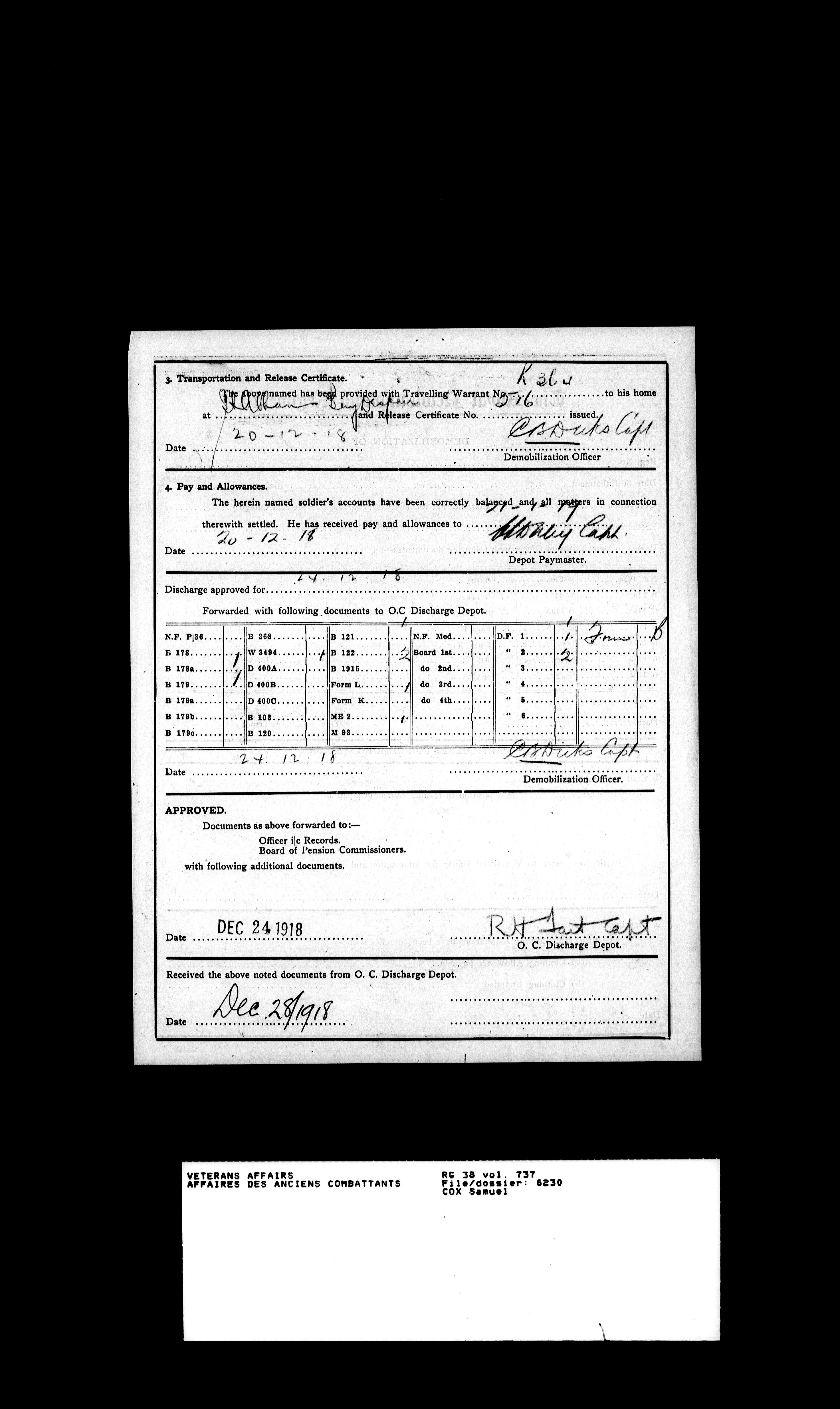 Military service files for members of the Royal Newfoundland Regiment and bandsmen and the Newfoundland Forestry Corps (1914-1919) - 18561