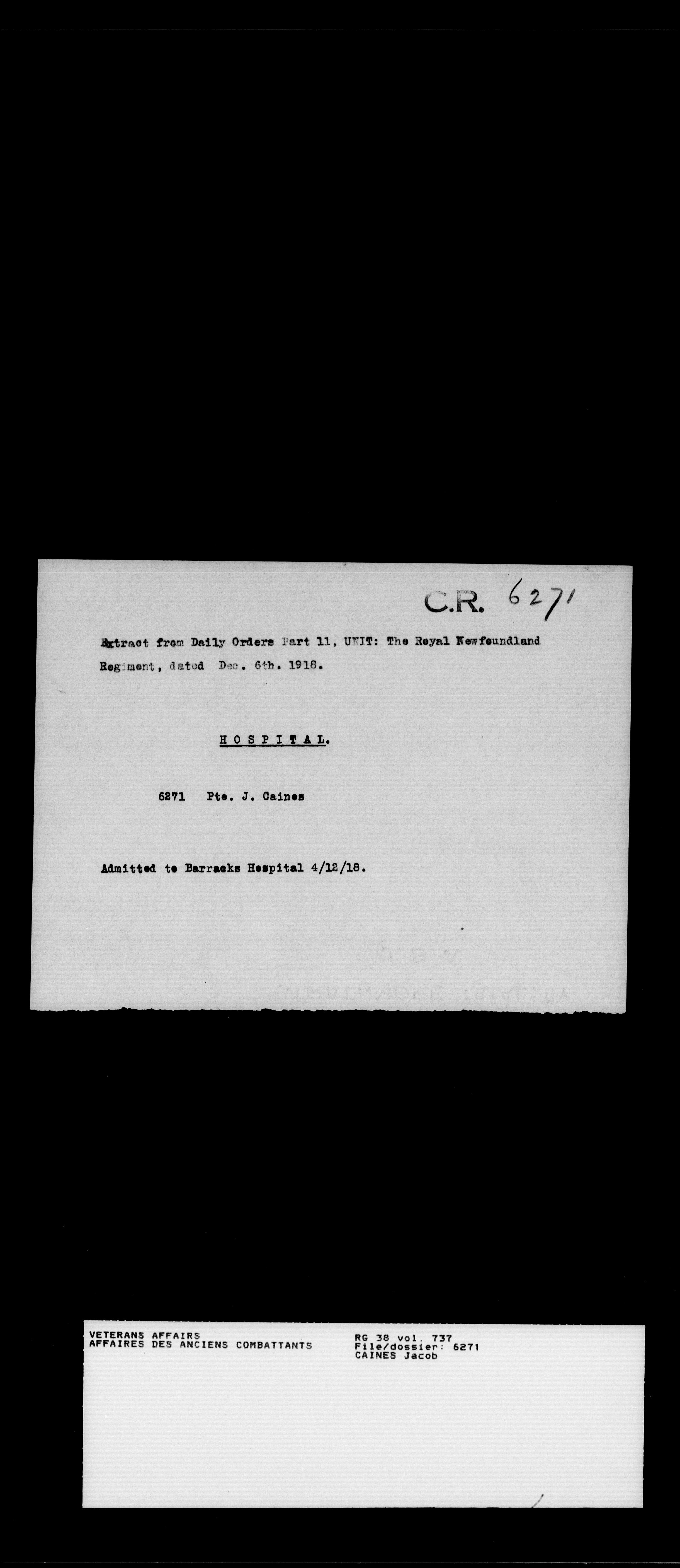 Royal Newfoundland Regiment service files : T-18562