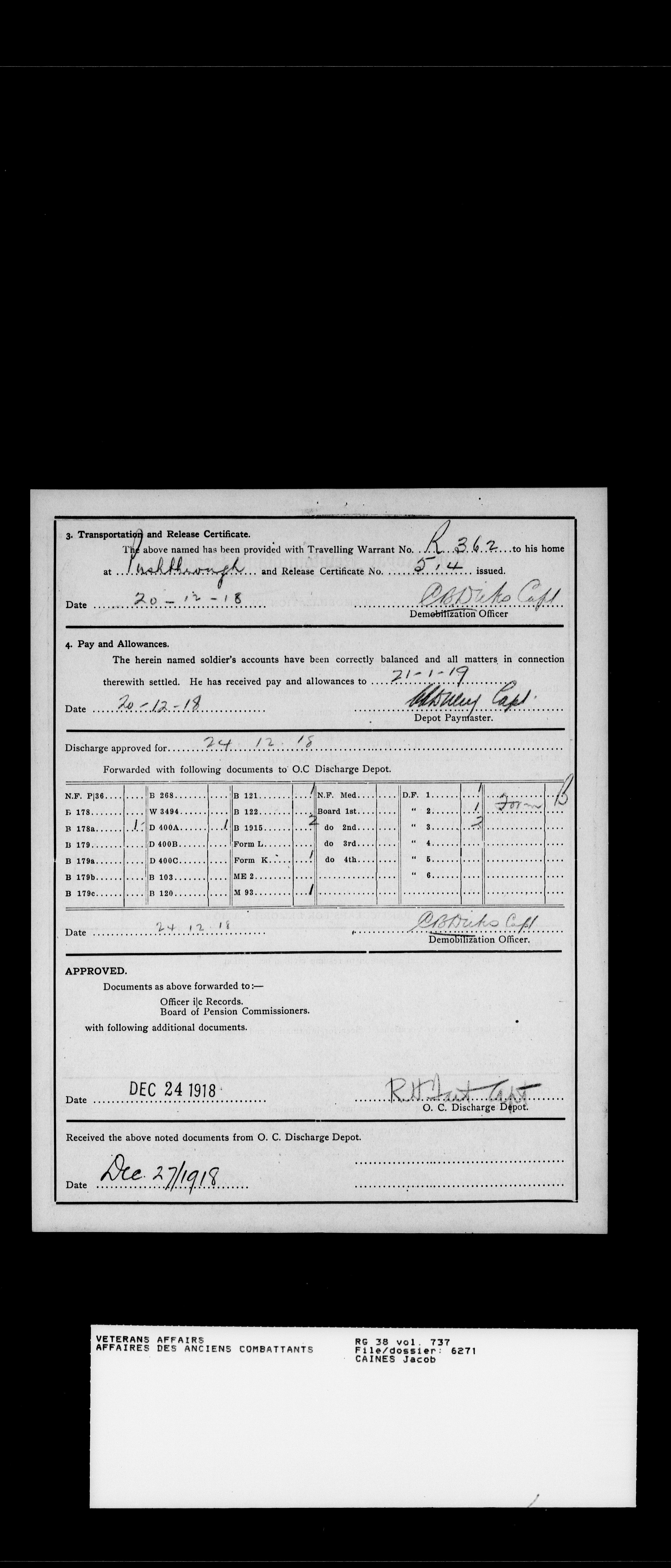 Military service files for members of the Royal Newfoundland Regiment and bandsmen and the Newfoundland Forestry Corps (1914-1919) - 18562
