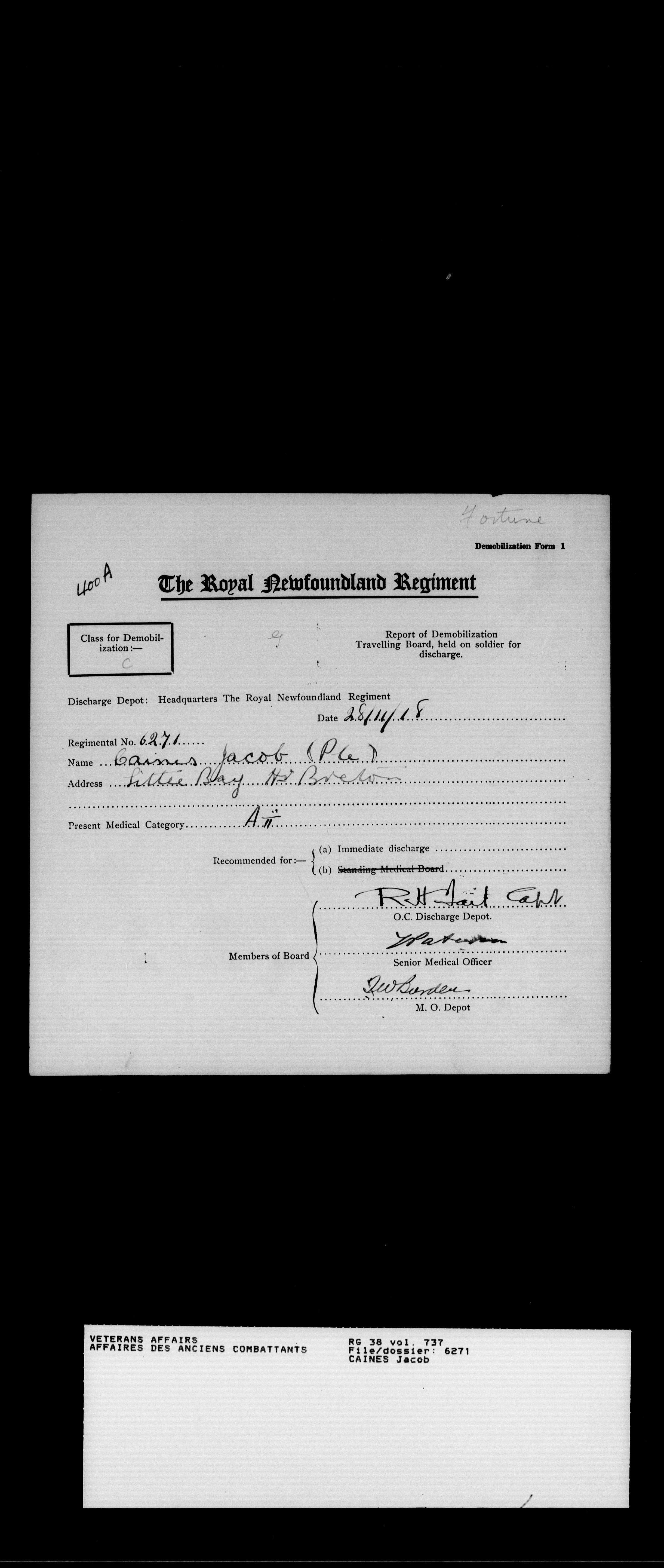 Military service files for members of the Royal Newfoundland Regiment and bandsmen and the Newfoundland Forestry Corps (1914-1919) - 18562