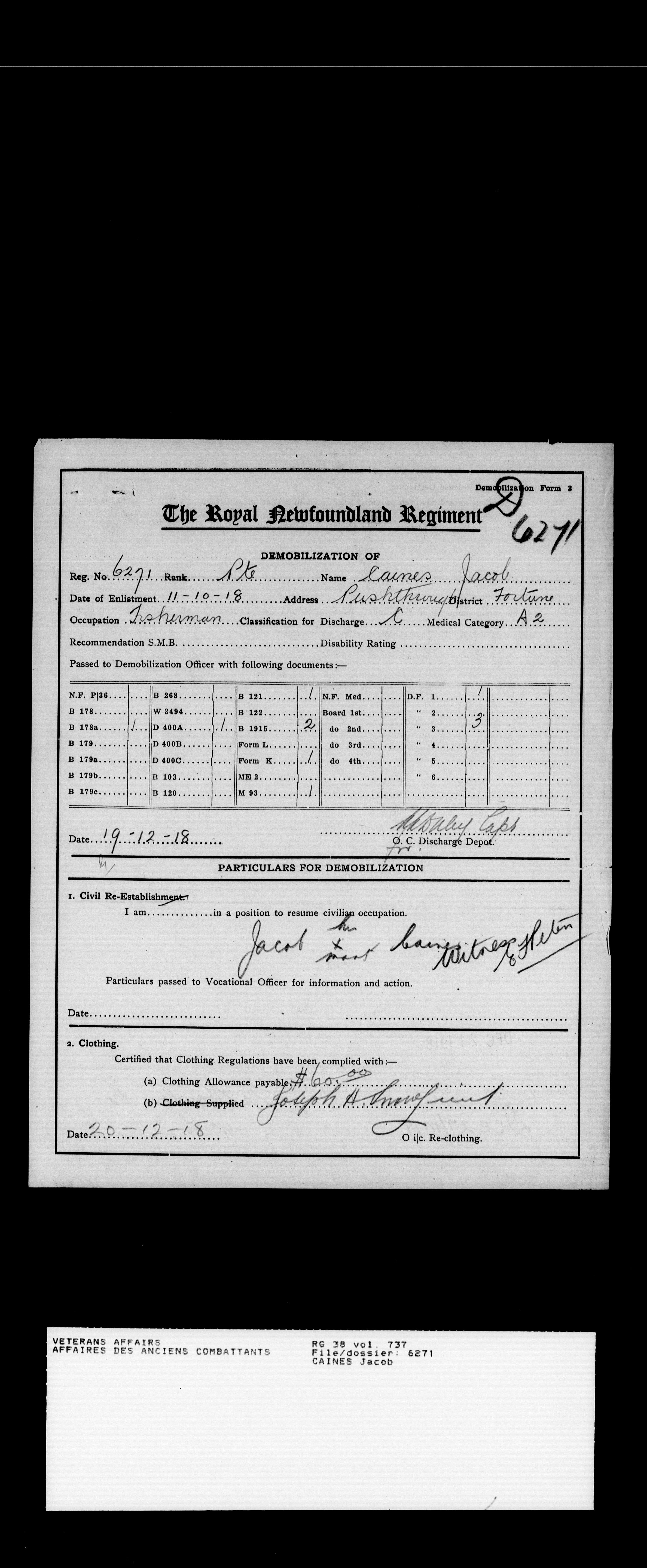 Royal Newfoundland Regiment service files : T-18562