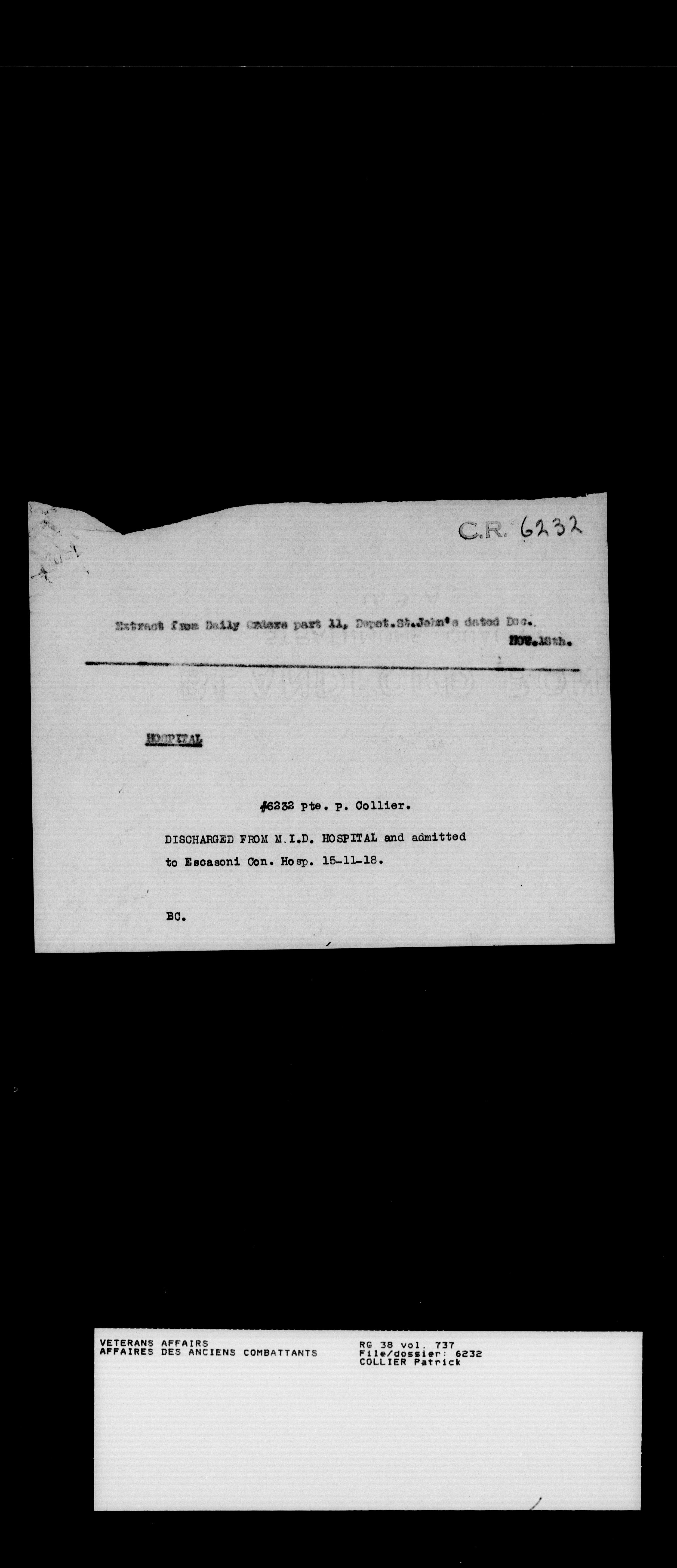 Military service files for members of the Royal Newfoundland Regiment and bandsmen and the Newfoundland Forestry Corps (1914-1919) - 18562