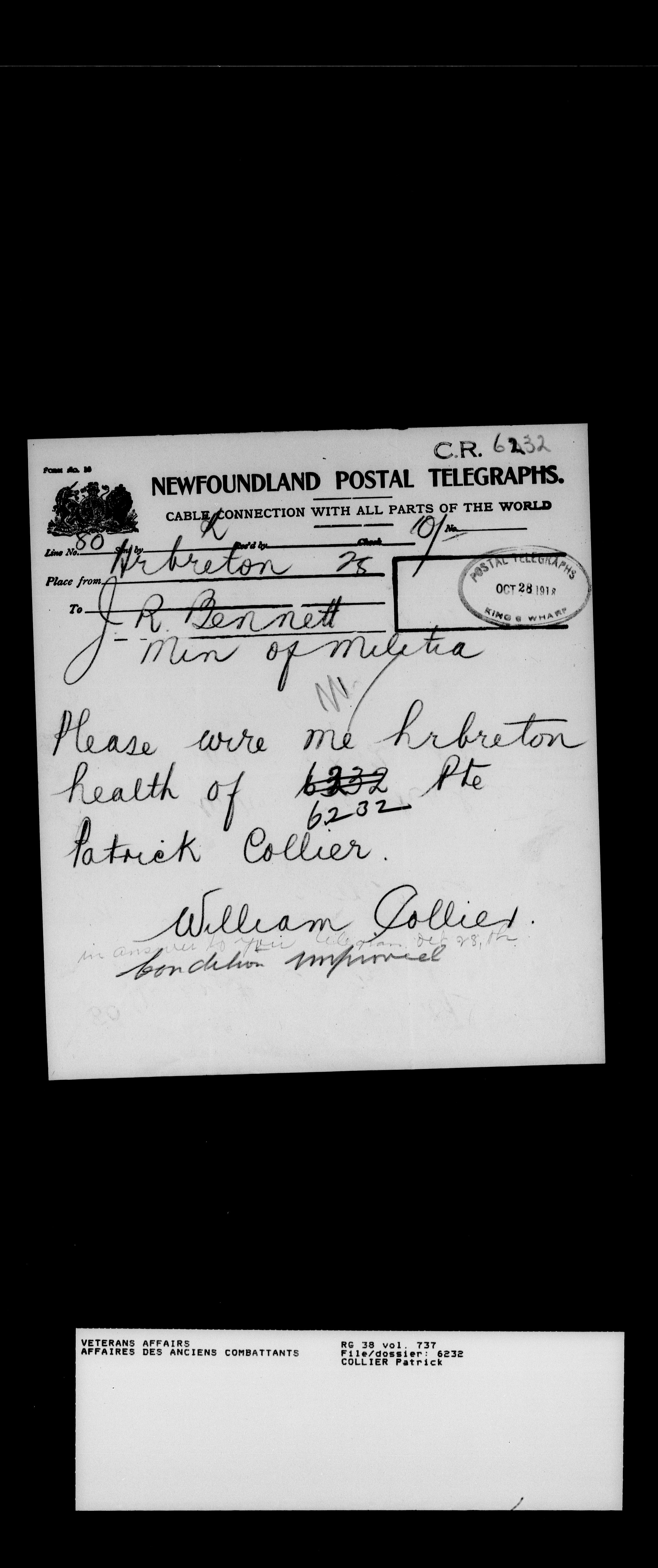 Military service files for members of the Royal Newfoundland Regiment and bandsmen and the Newfoundland Forestry Corps (1914-1919) - 18562