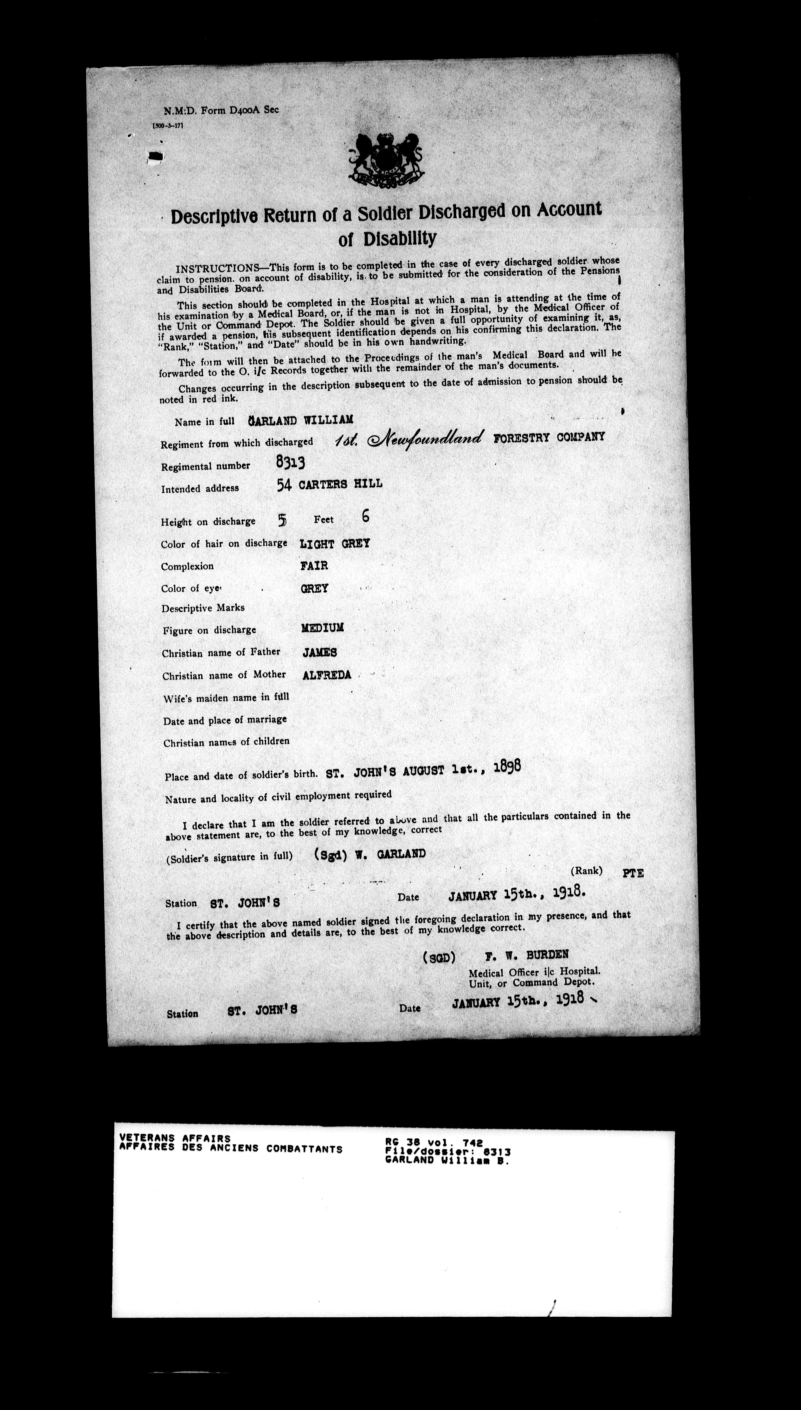Military service files for members of the Royal Newfoundland Regiment and bandsmen and the Newfoundland Forestry Corps (1914-1919) - 18566