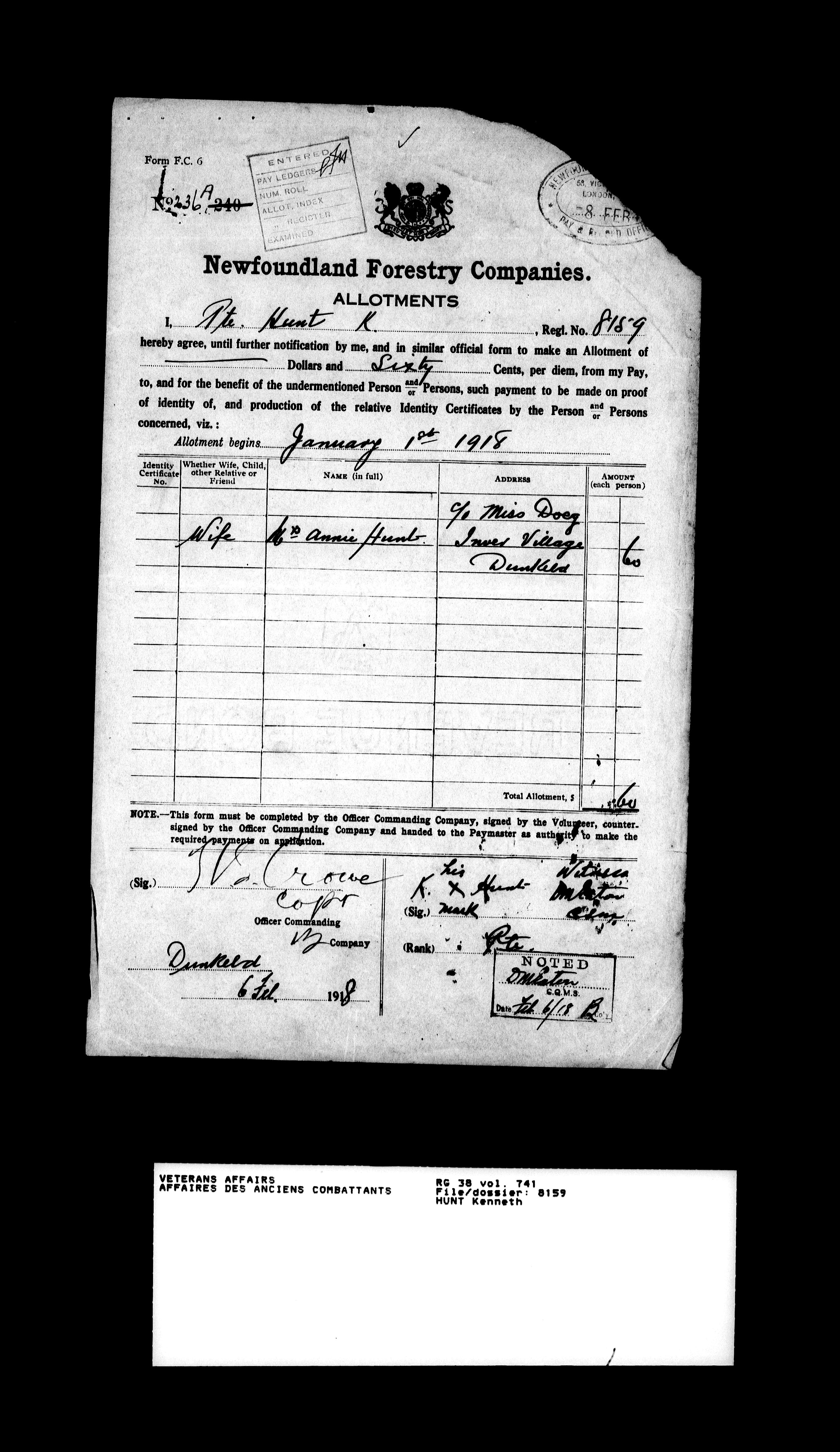 Military service files for members of the Royal Newfoundland Regiment and bandsmen and the Newfoundland Forestry Corps (1914-1919) - 18566