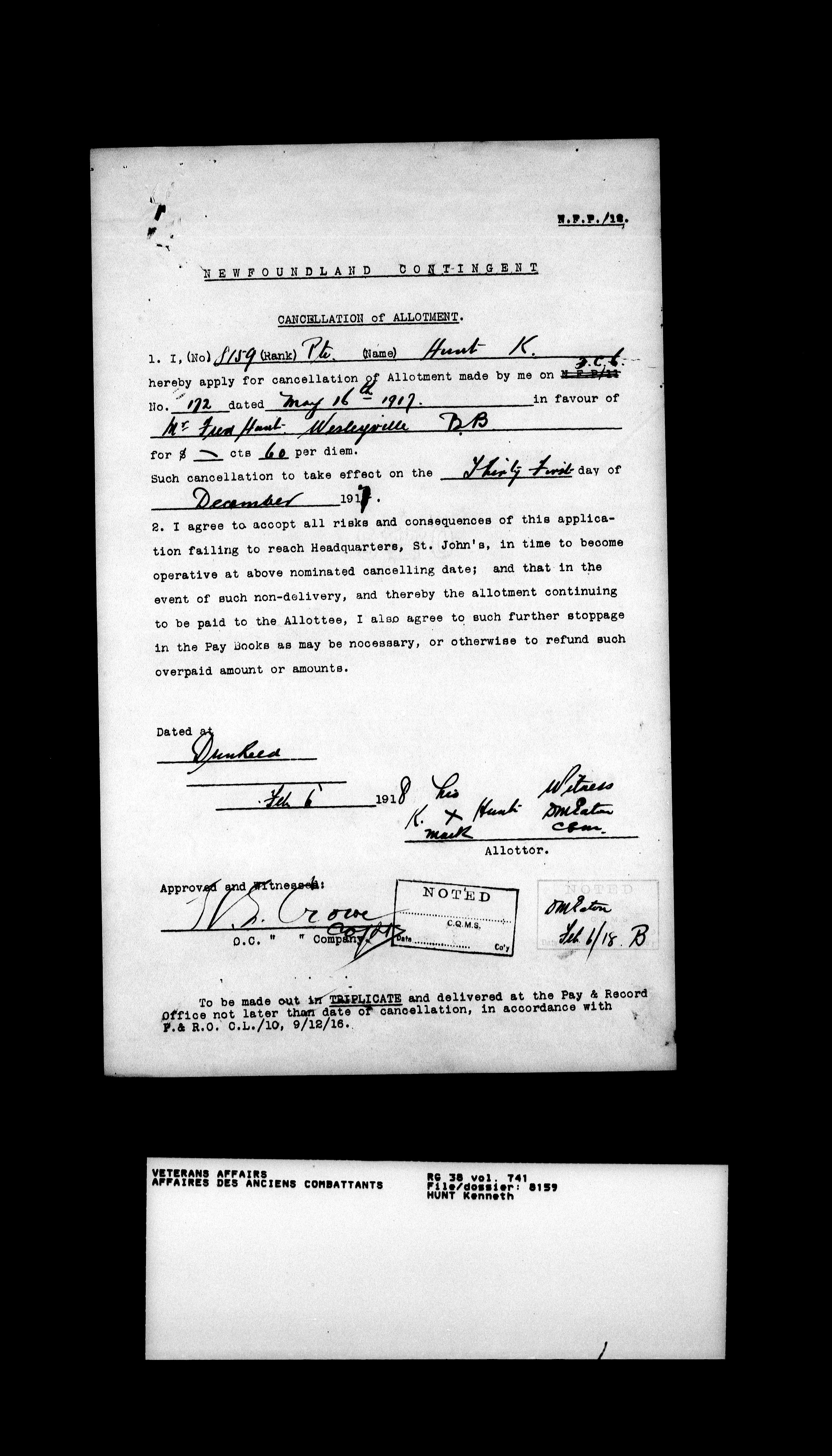 Military service files for members of the Royal Newfoundland Regiment and bandsmen and the Newfoundland Forestry Corps (1914-1919) - 18566