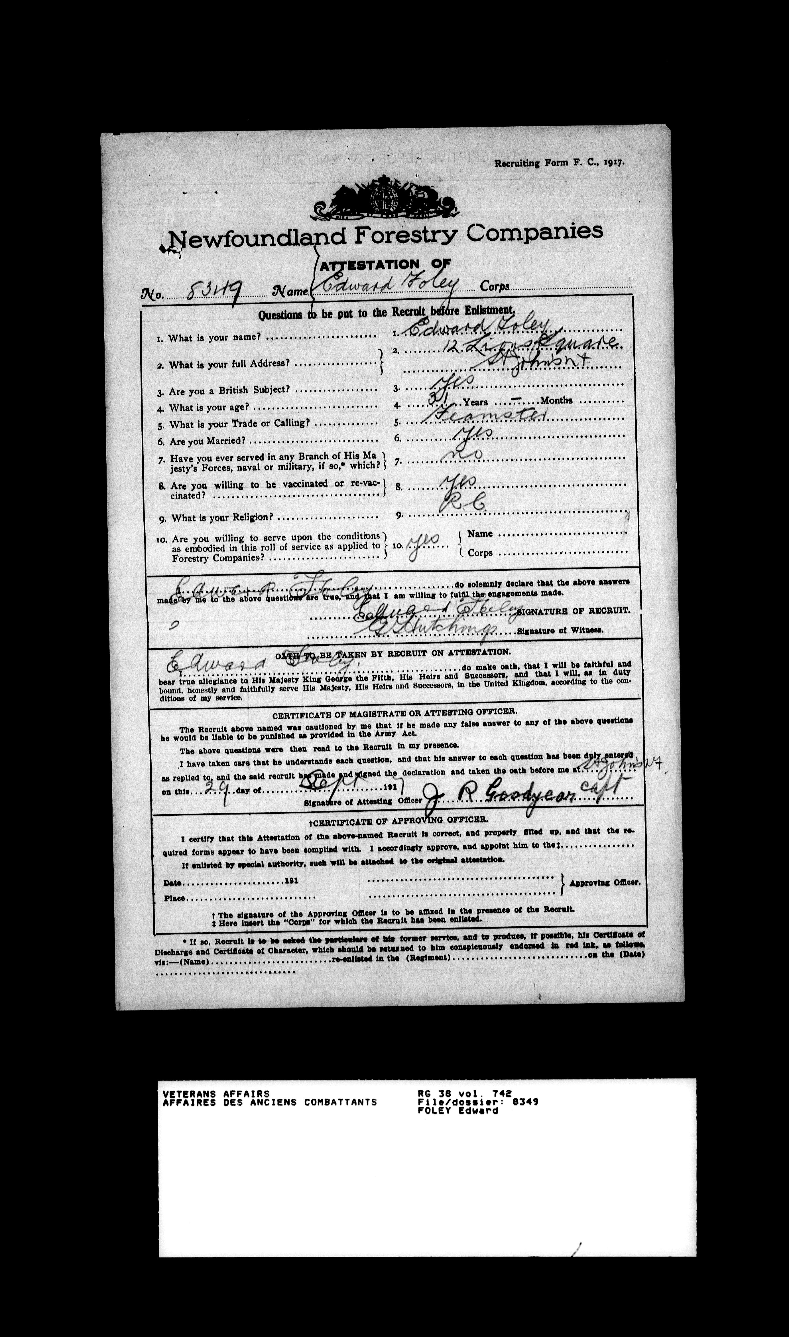 Royal Newfoundland Regiment service files : T-18567