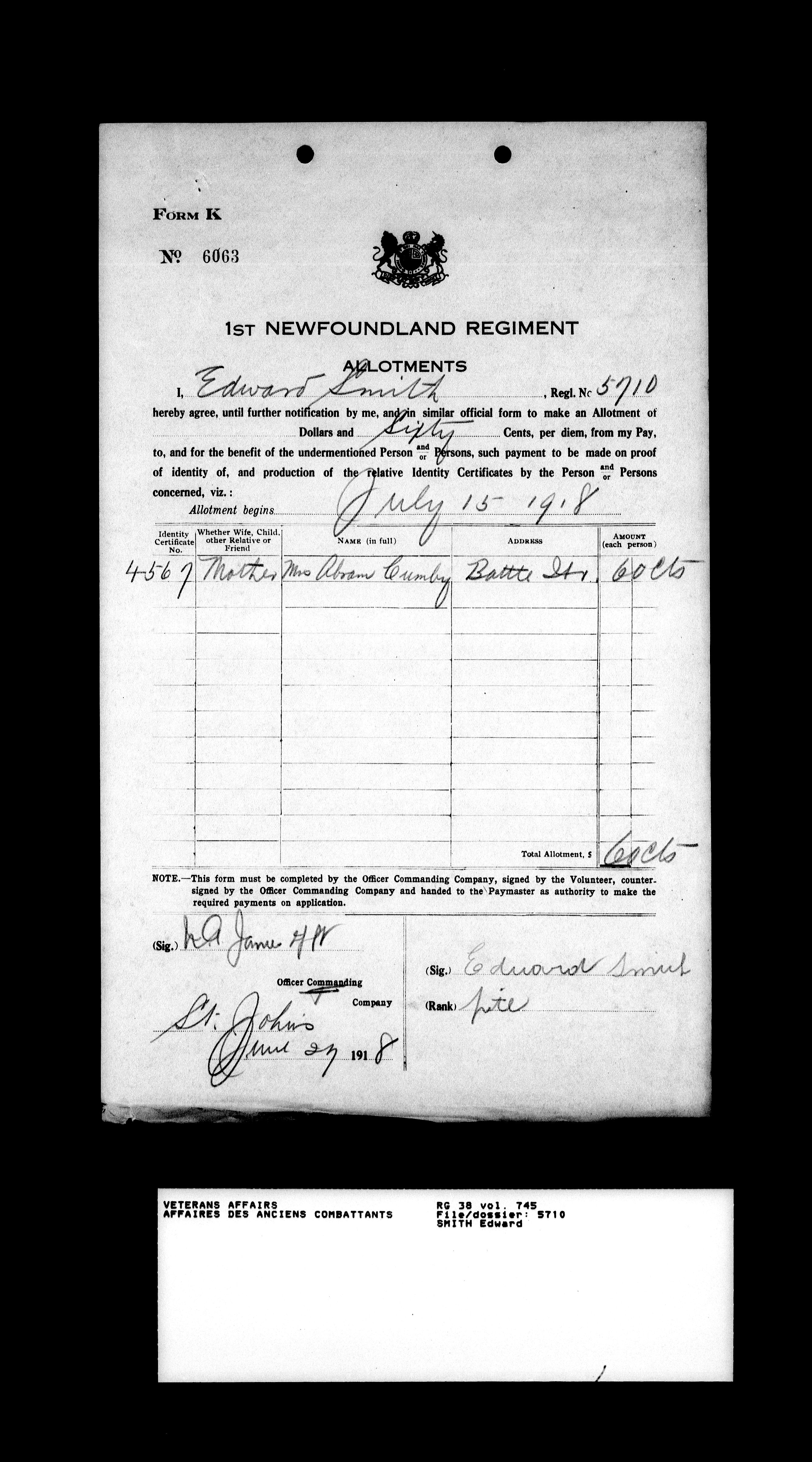 Military service files for members of the Royal Newfoundland Regiment and bandsmen and the Newfoundland Forestry Corps (1914-1919) - 18568