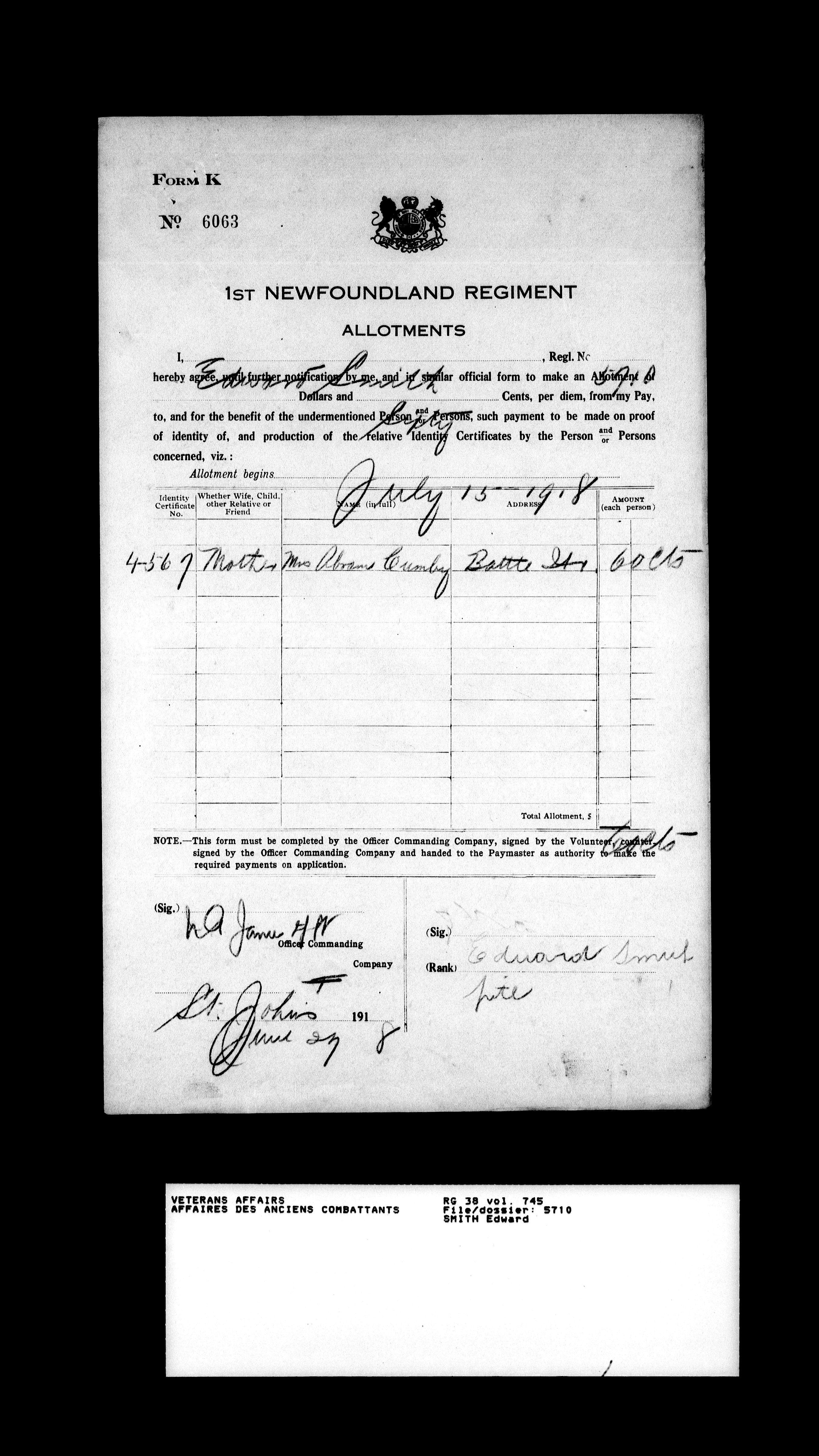 Military service files for members of the Royal Newfoundland Regiment and bandsmen and the Newfoundland Forestry Corps (1914-1919) - 18568