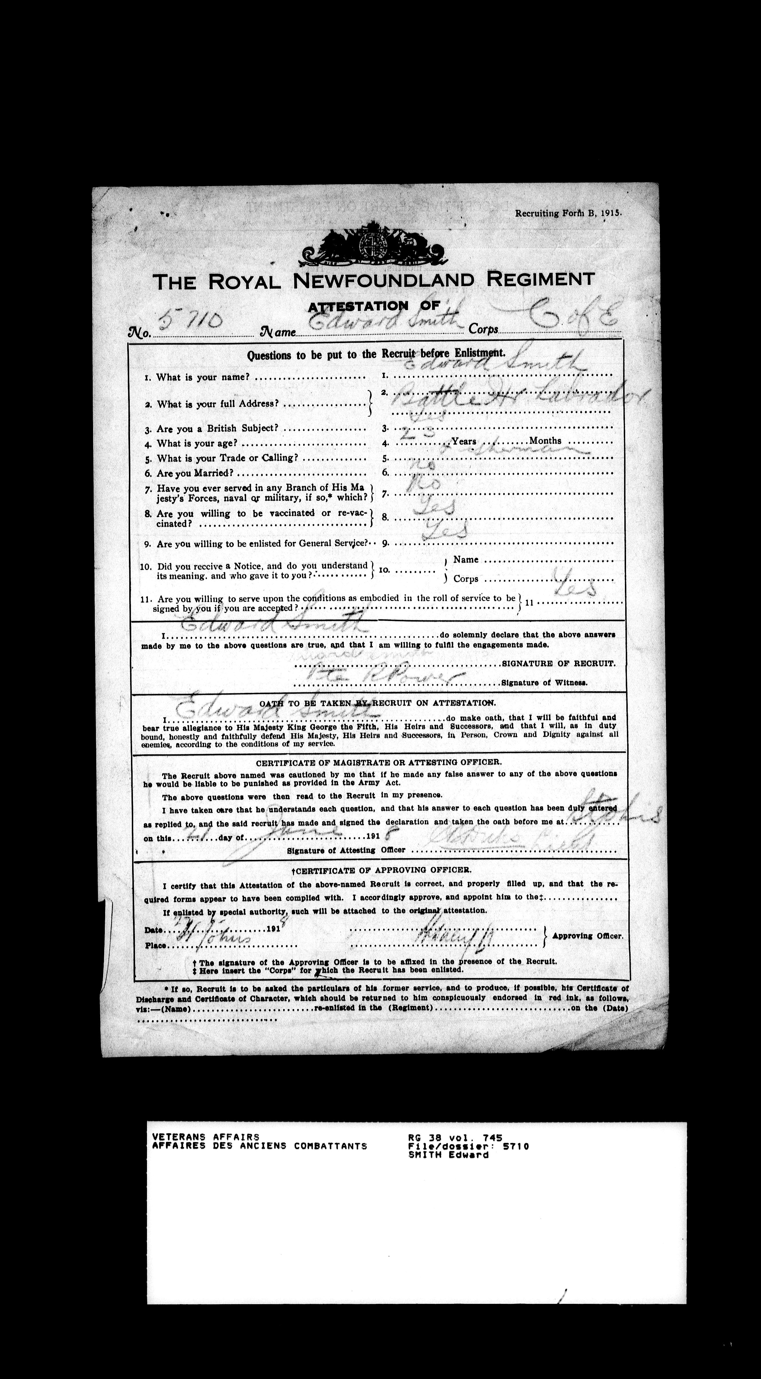 Military service files for members of the Royal Newfoundland Regiment and bandsmen and the Newfoundland Forestry Corps (1914-1919) - 18568