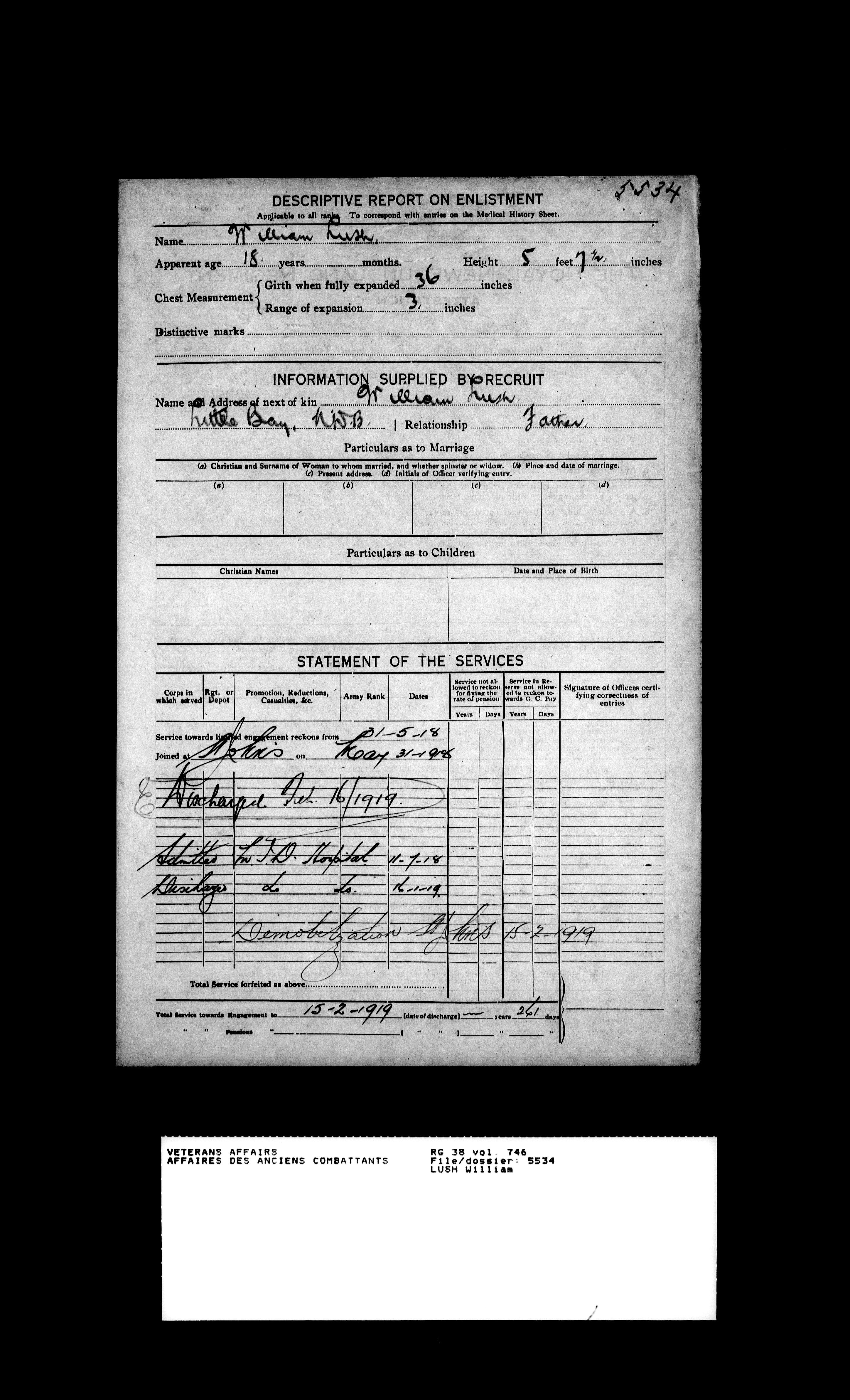Military service files for members of the Royal Newfoundland Regiment and bandsmen and the Newfoundland Forestry Corps (1914-1919) - 18569