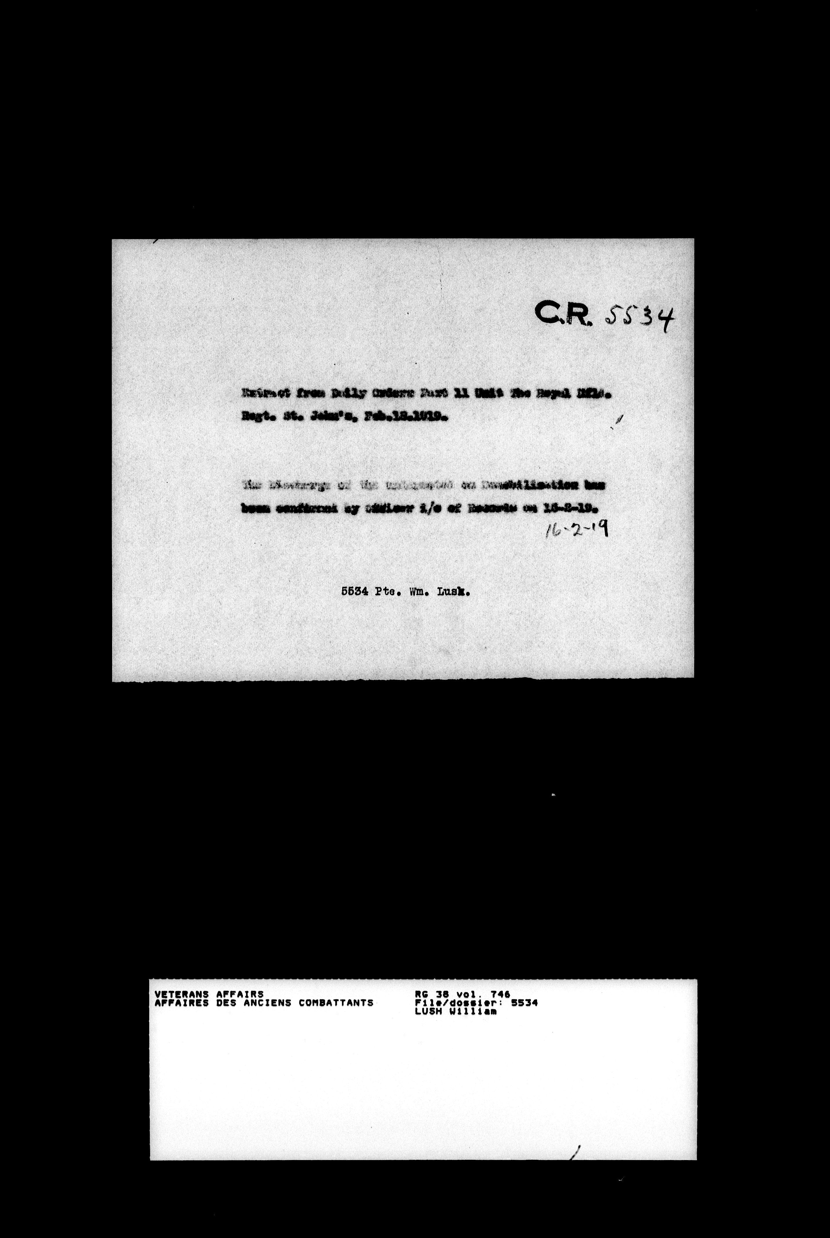 Military service files for members of the Royal Newfoundland Regiment and bandsmen and the Newfoundland Forestry Corps (1914-1919) - 18569