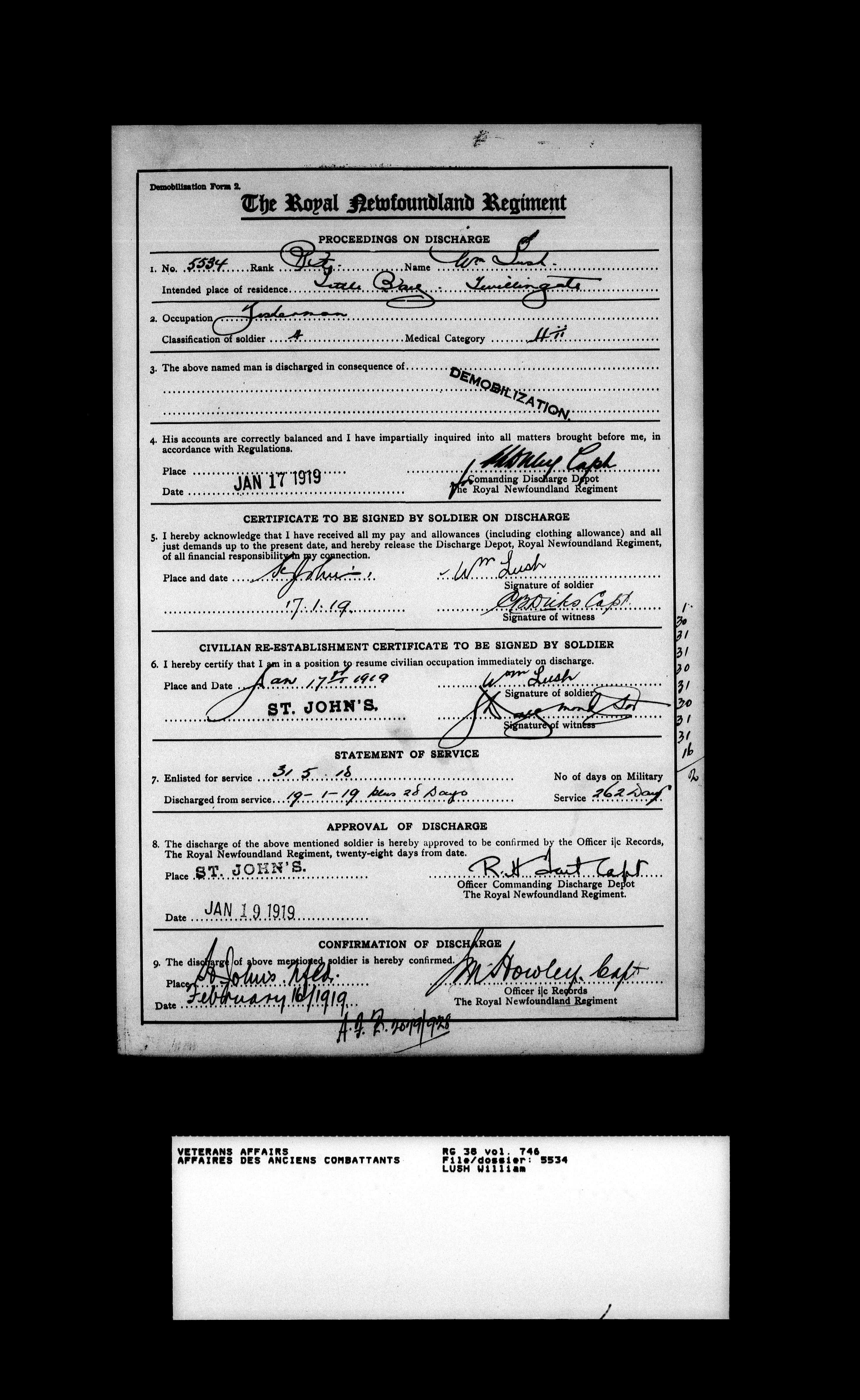 Military service files for members of the Royal Newfoundland Regiment and bandsmen and the Newfoundland Forestry Corps (1914-1919) - 18569