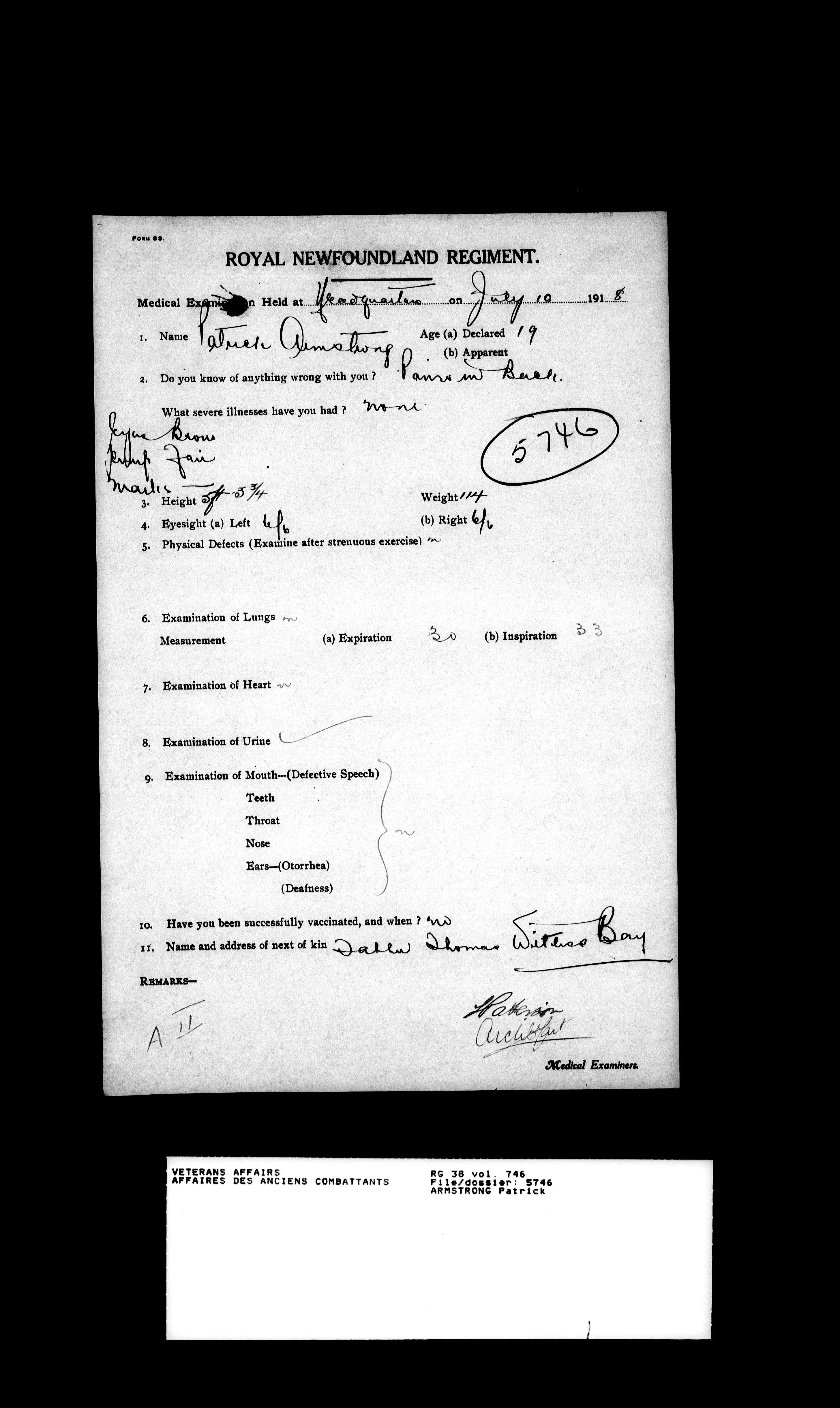 Military service files for members of the Royal Newfoundland Regiment and bandsmen and the Newfoundland Forestry Corps (1914-1919) - 18570