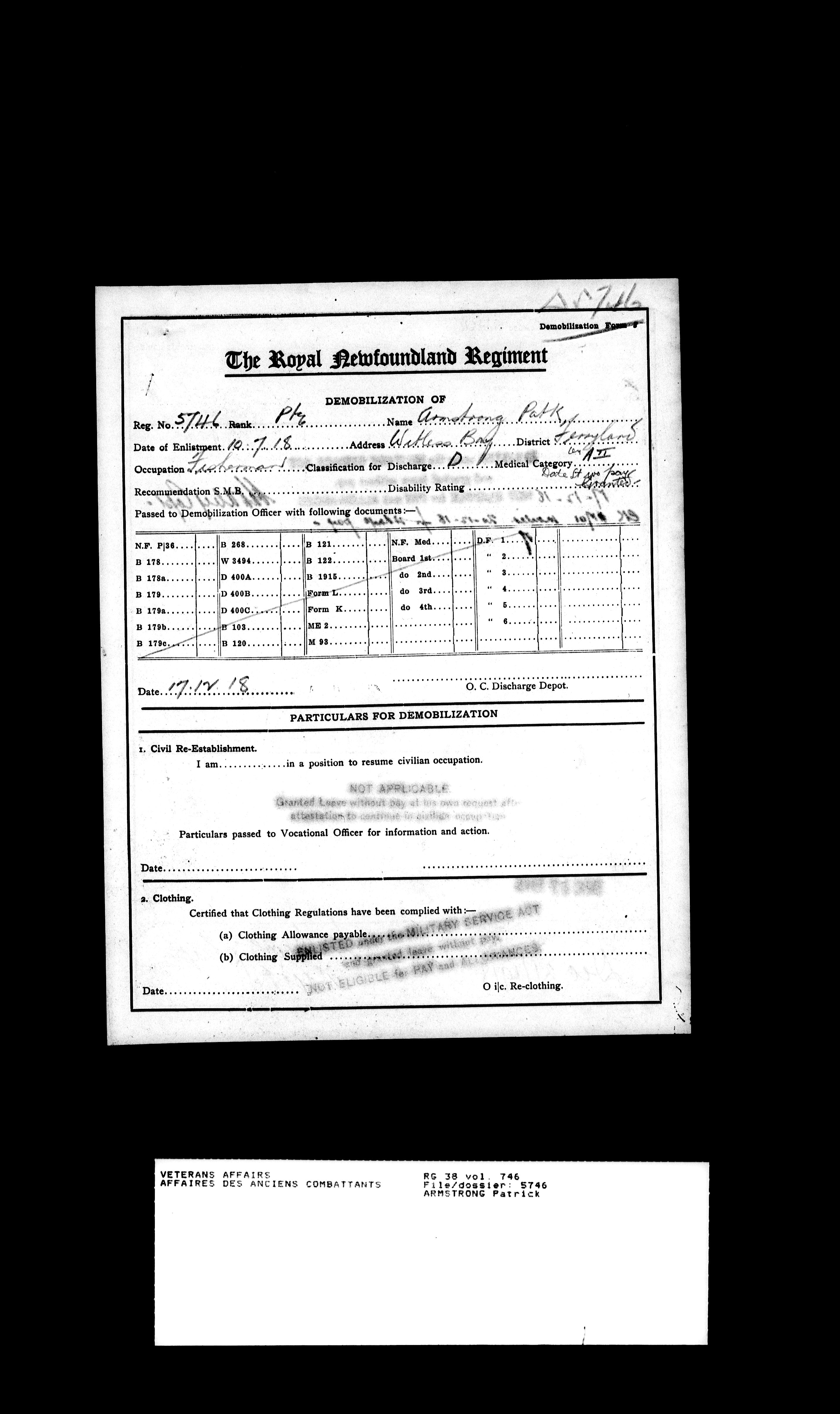 Military service files for members of the Royal Newfoundland Regiment and bandsmen and the Newfoundland Forestry Corps (1914-1919) - 18570
