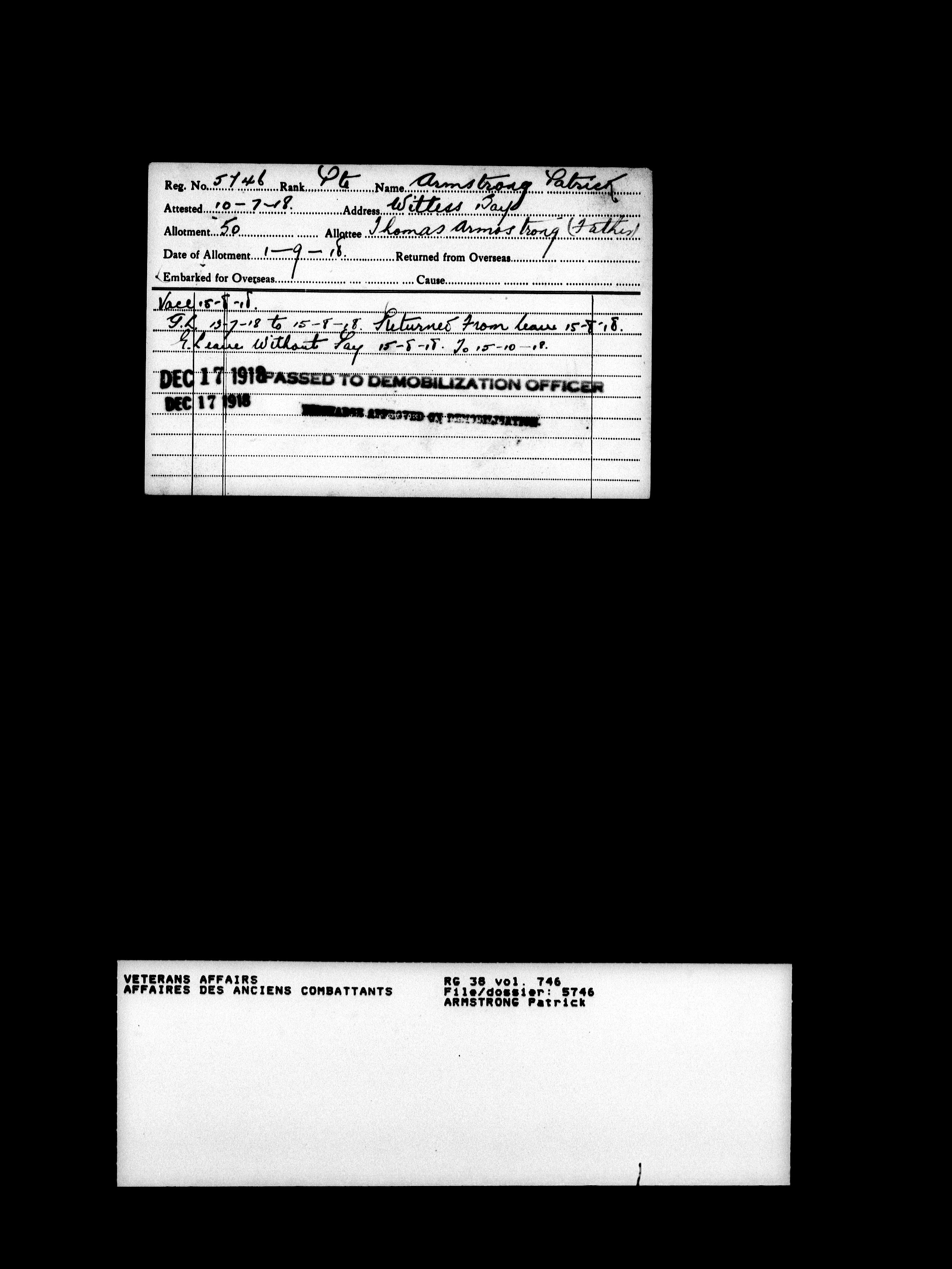 Military service files for members of the Royal Newfoundland Regiment and bandsmen and the Newfoundland Forestry Corps (1914-1919) - 18570