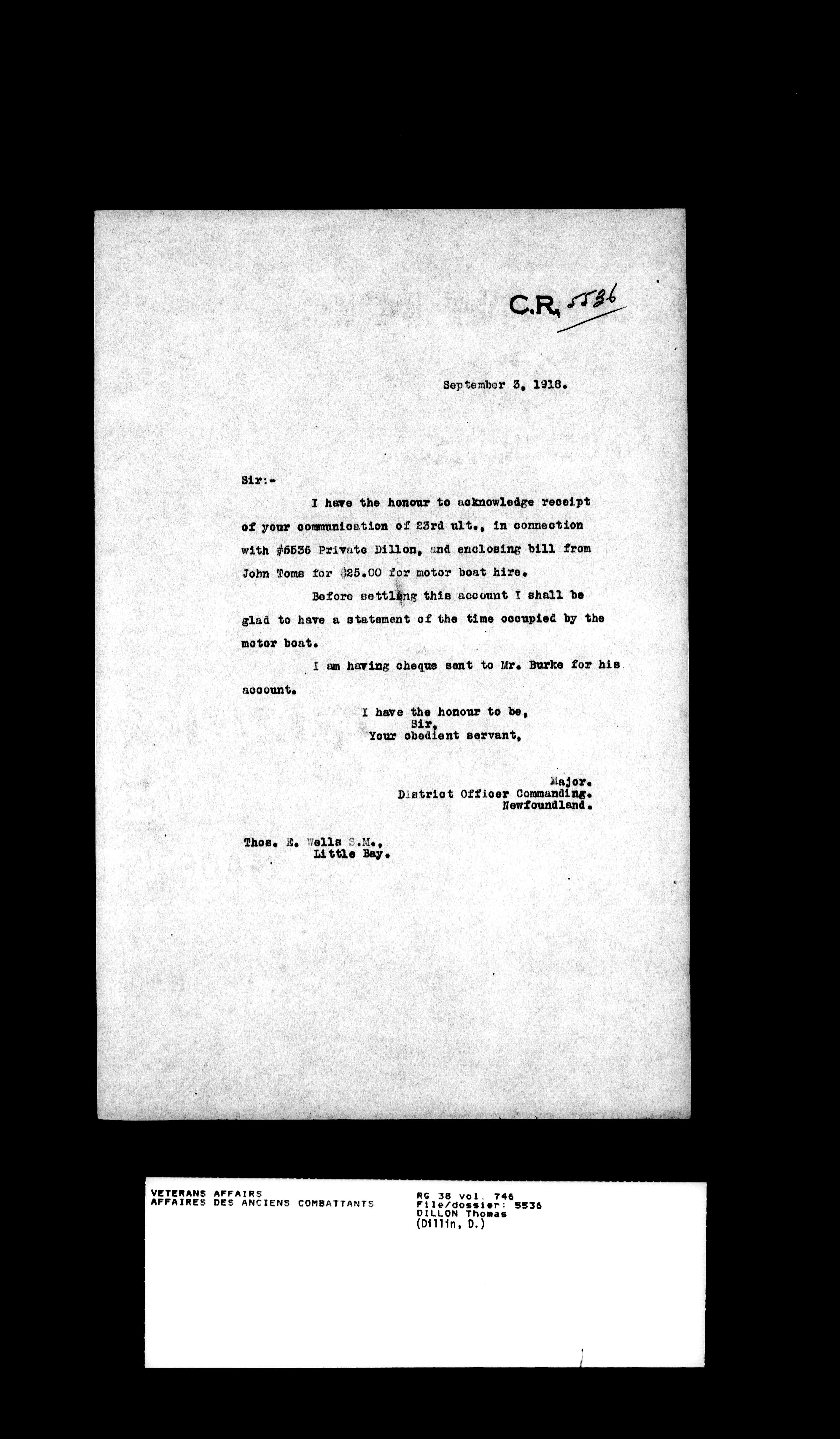 Military service files for members of the Royal Newfoundland Regiment and bandsmen and the Newfoundland Forestry Corps (1914-1919) - 18570