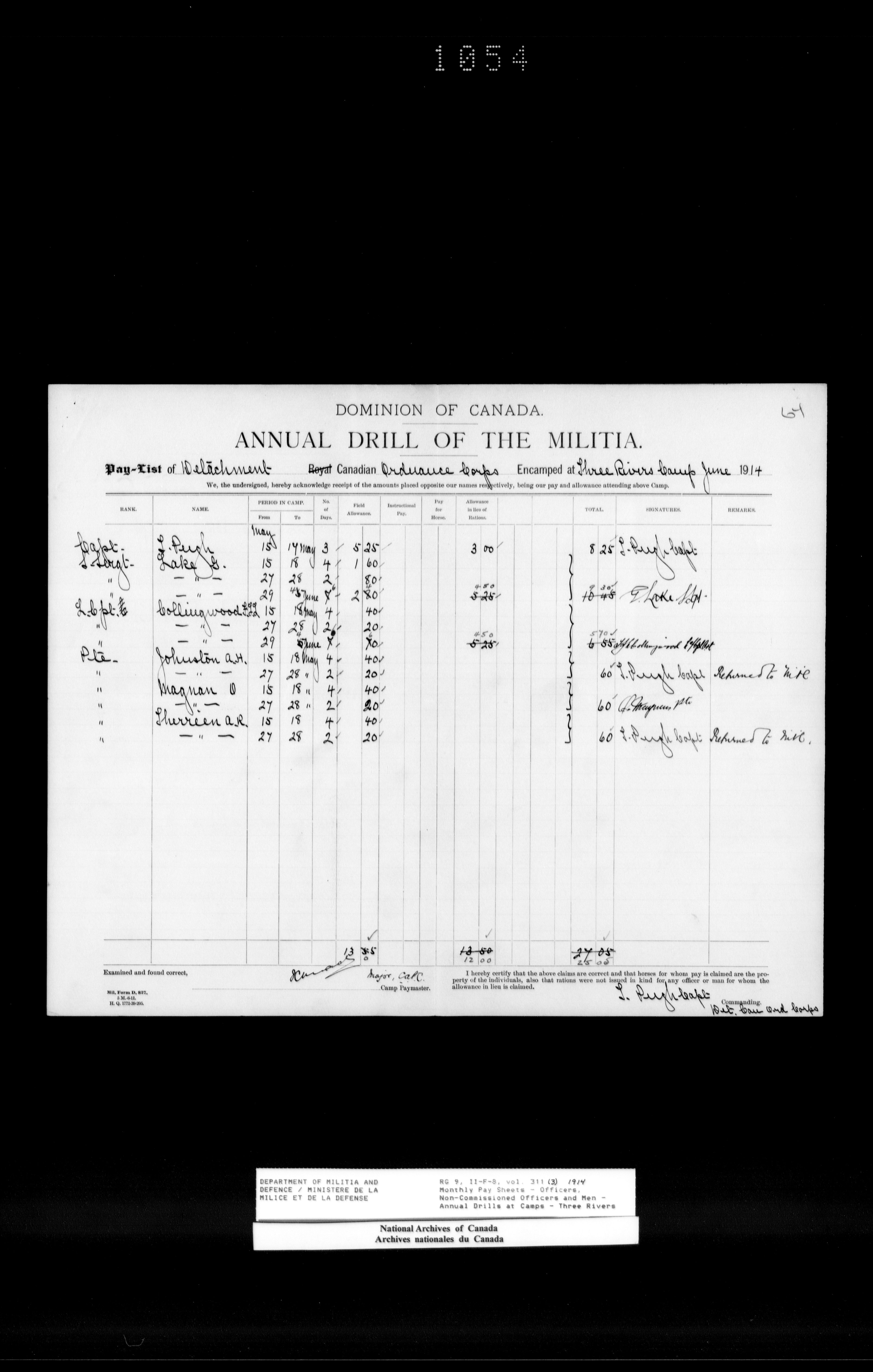 Nominal rolls and paylists for the Permanent Force - 18574