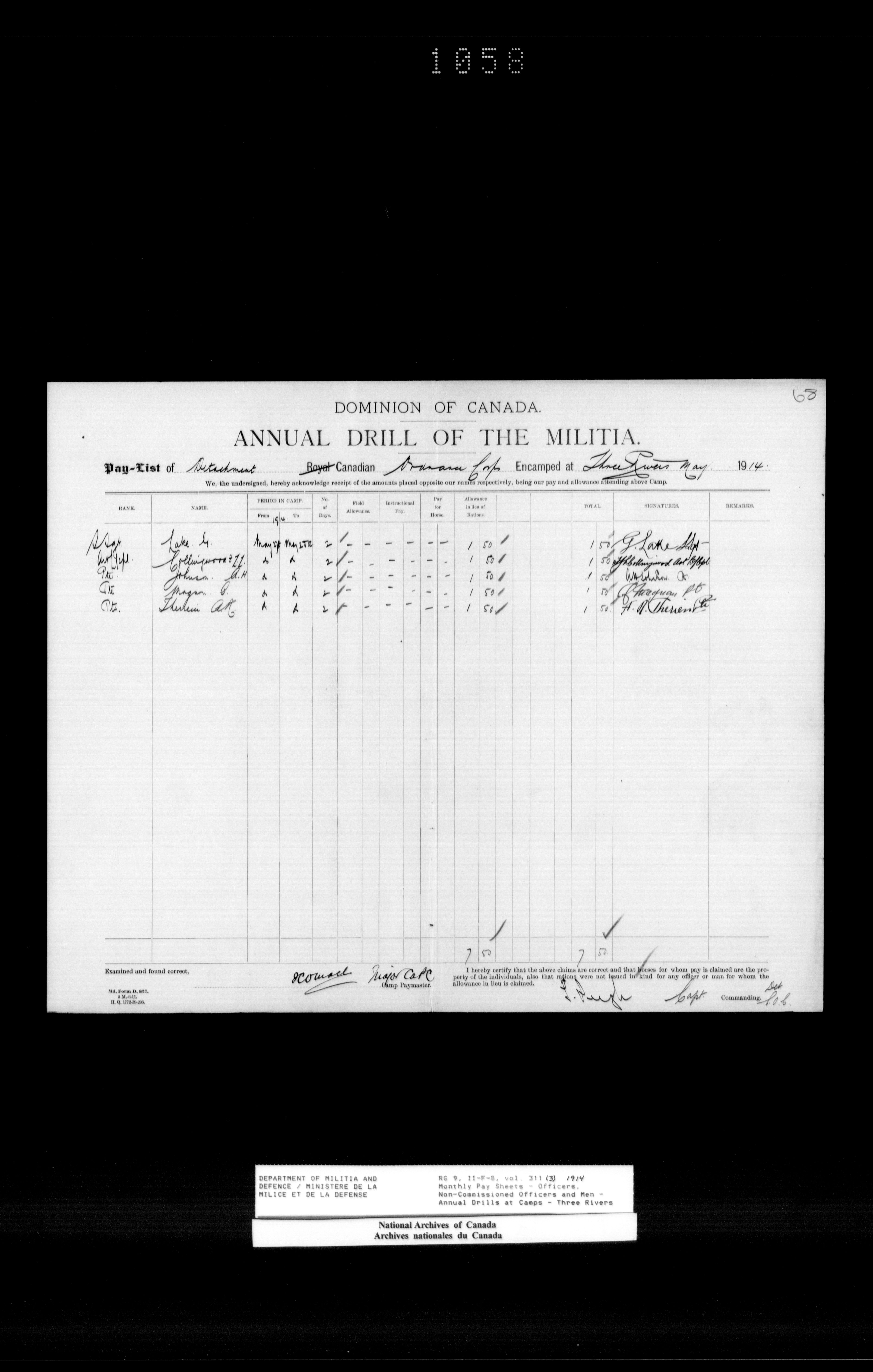 Nominal rolls and paylists for the Permanent Force - 18574