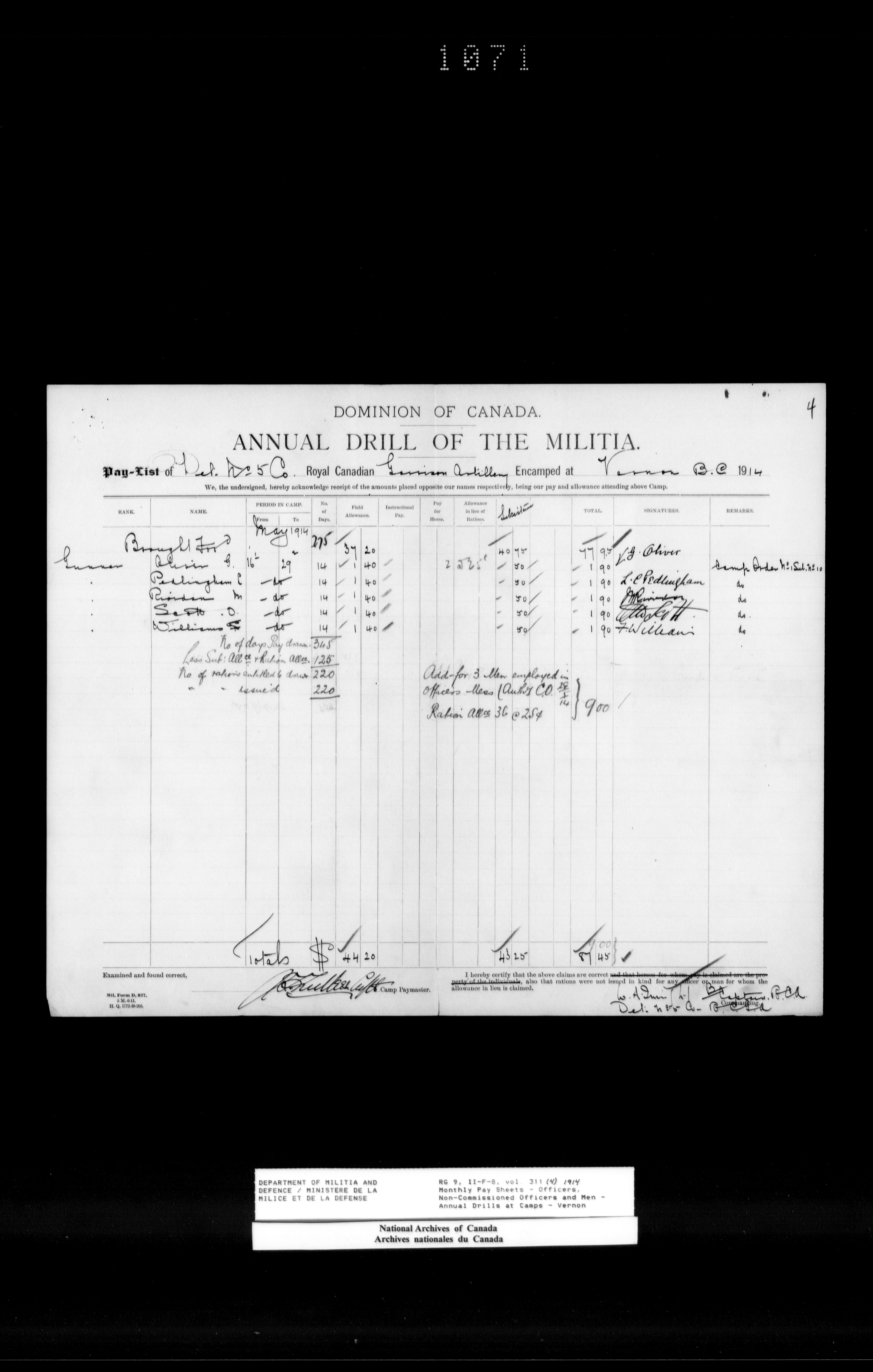 Department of Militia and Defence; nominal rolls and paylists for the Permanent Force : T-18574