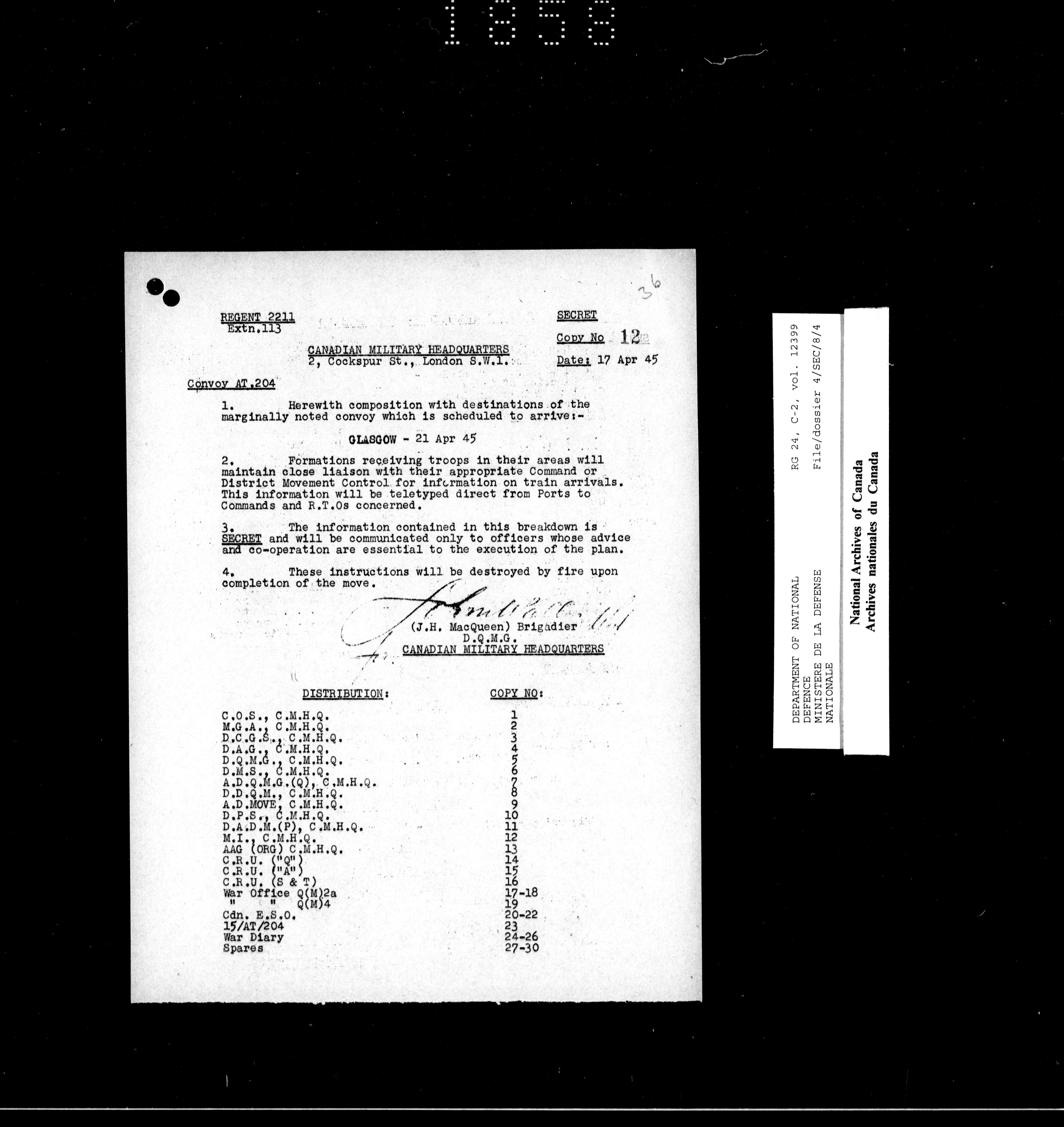 Canadian Military Headquarters, London (1939-1947) - 18682