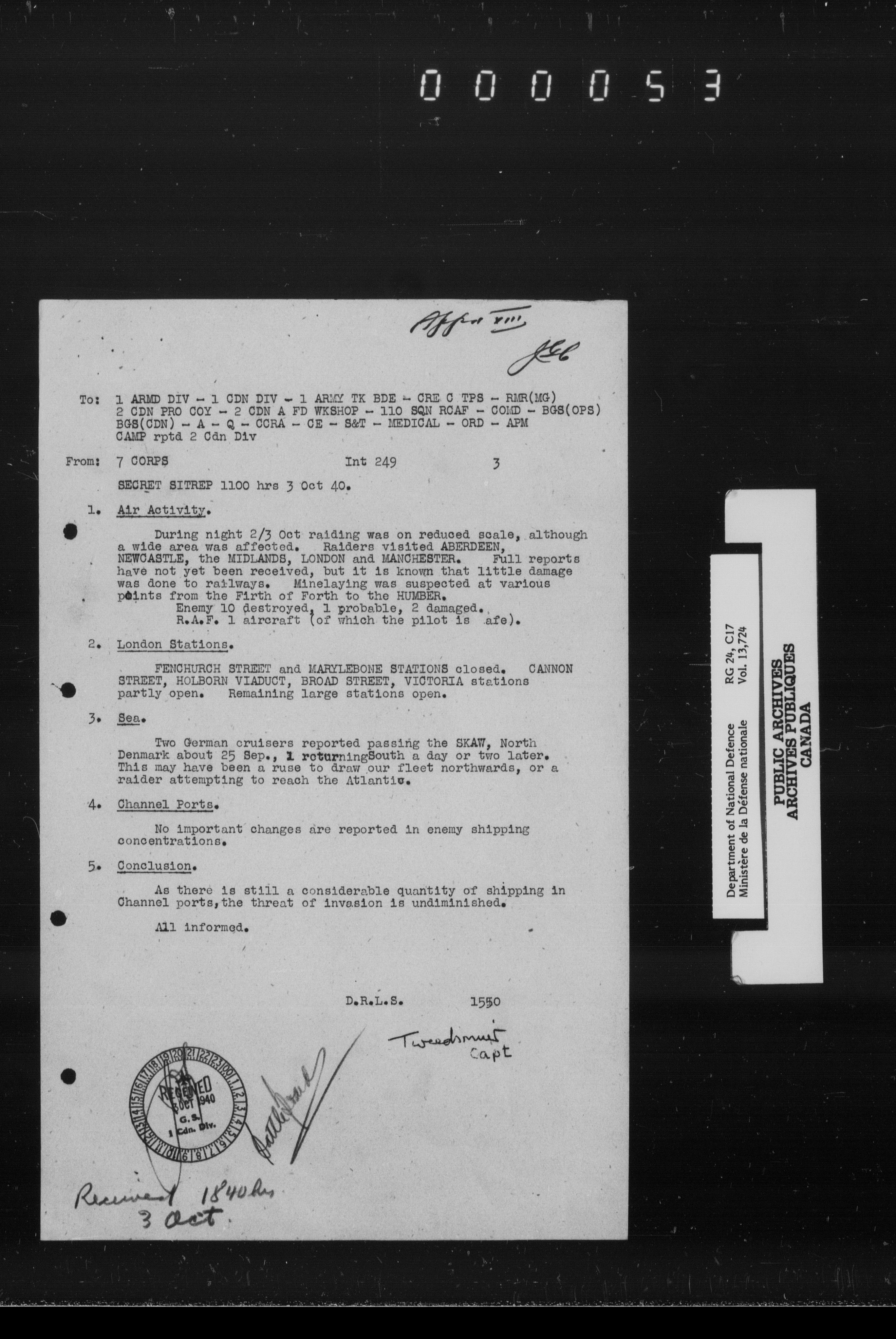 War diaries, 1939-1945 - 1874