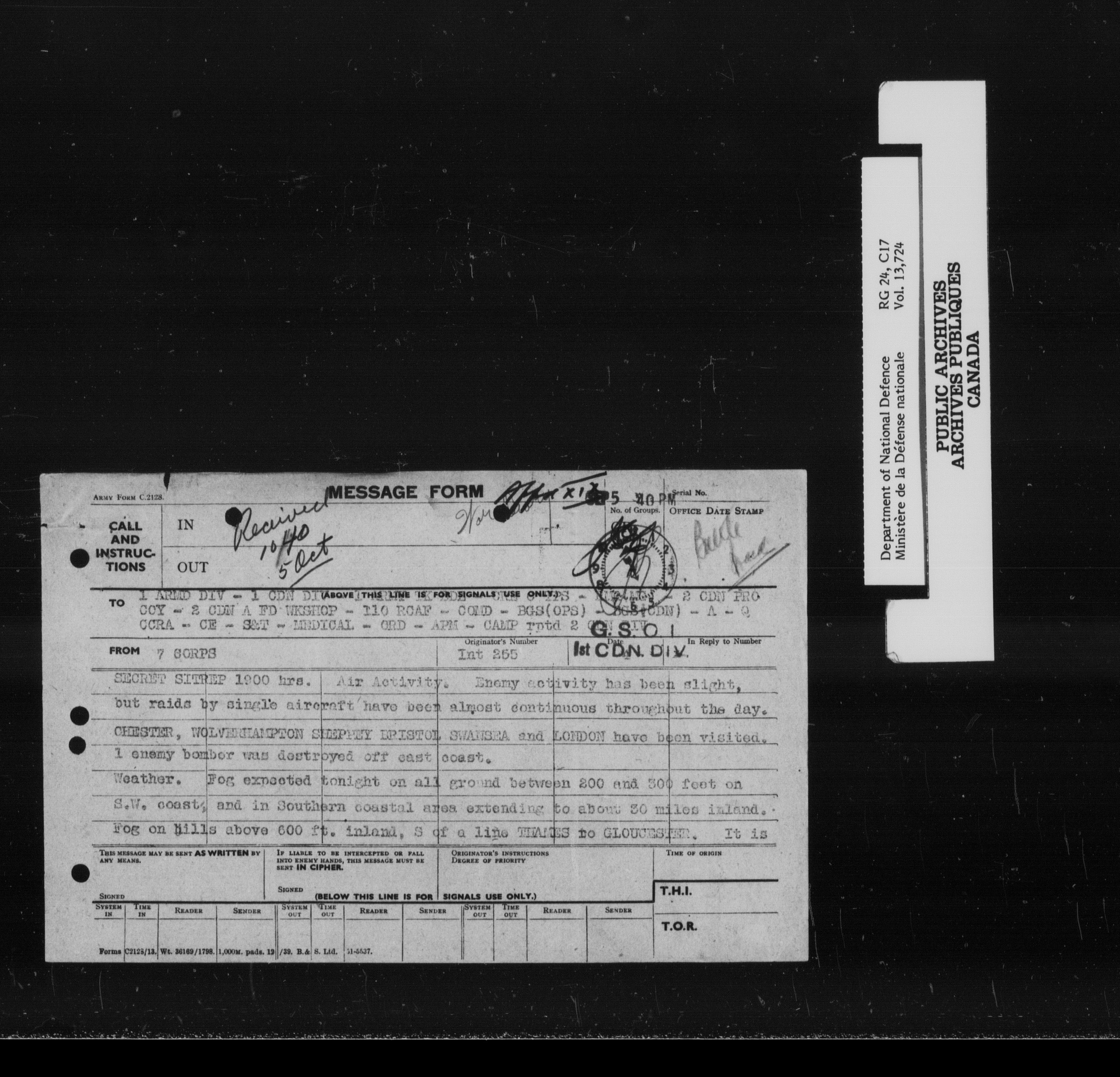 War diaries, 1939-1945 - 1874