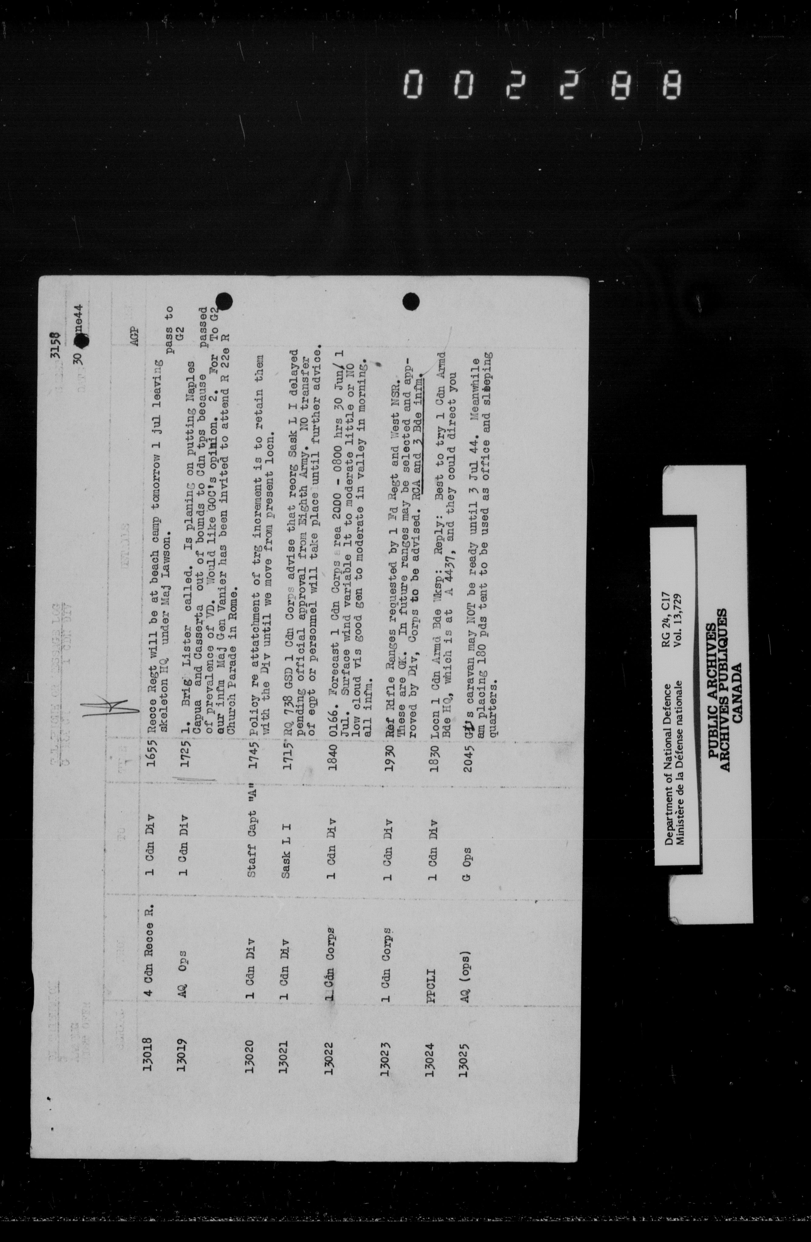 War diaries, 1939-1945 - 1877