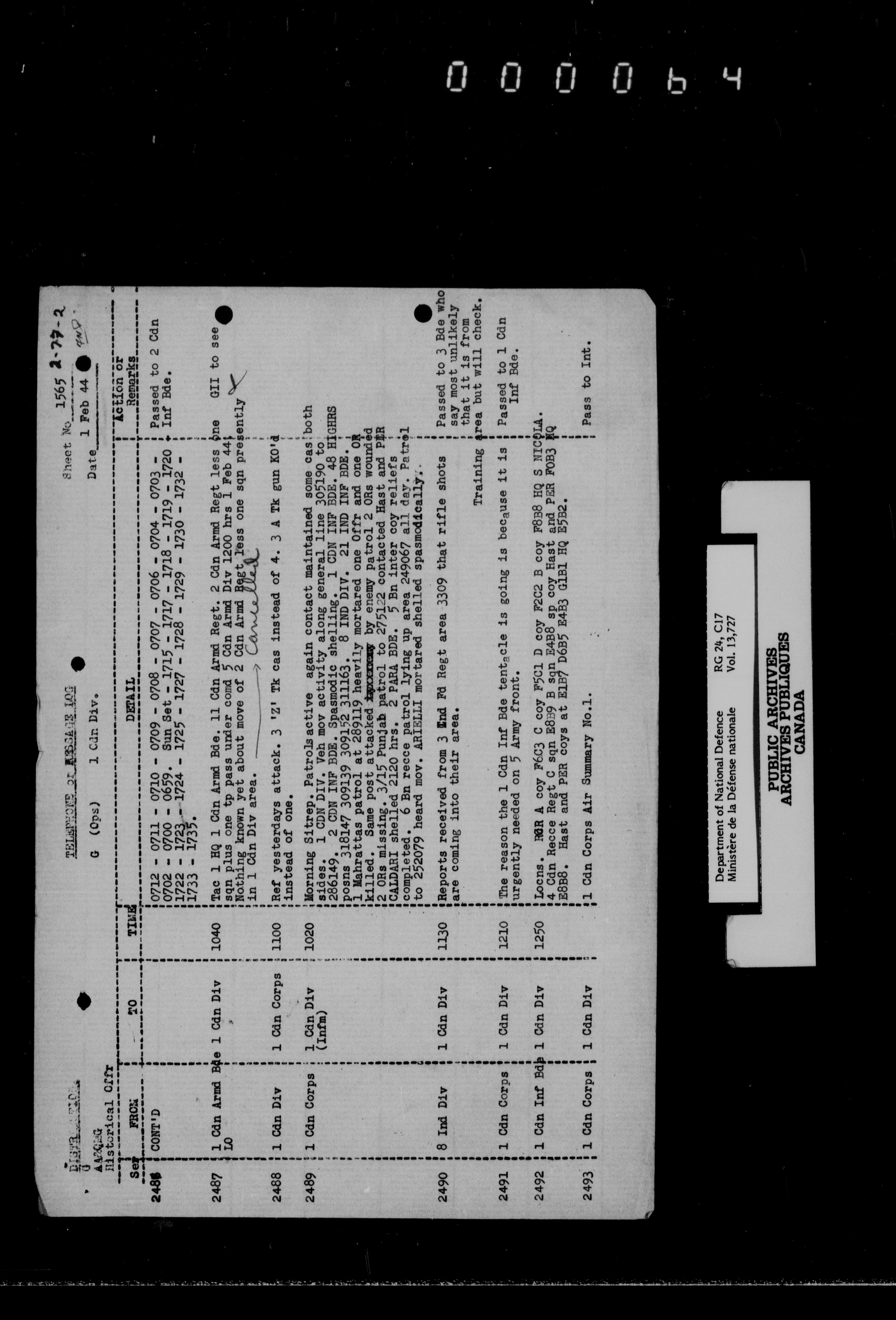 War diaries, 1939-1945 - 1877