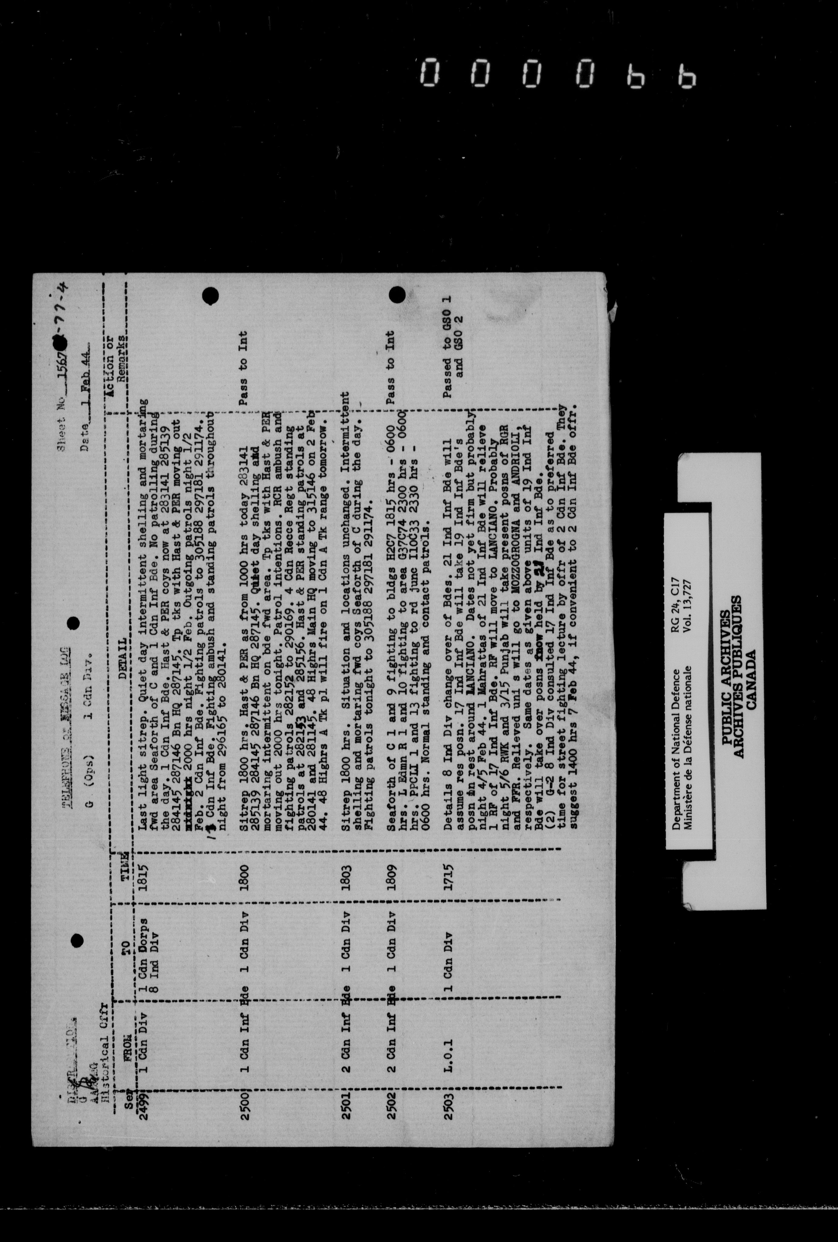 War diaries, 1939-1945 - 1877