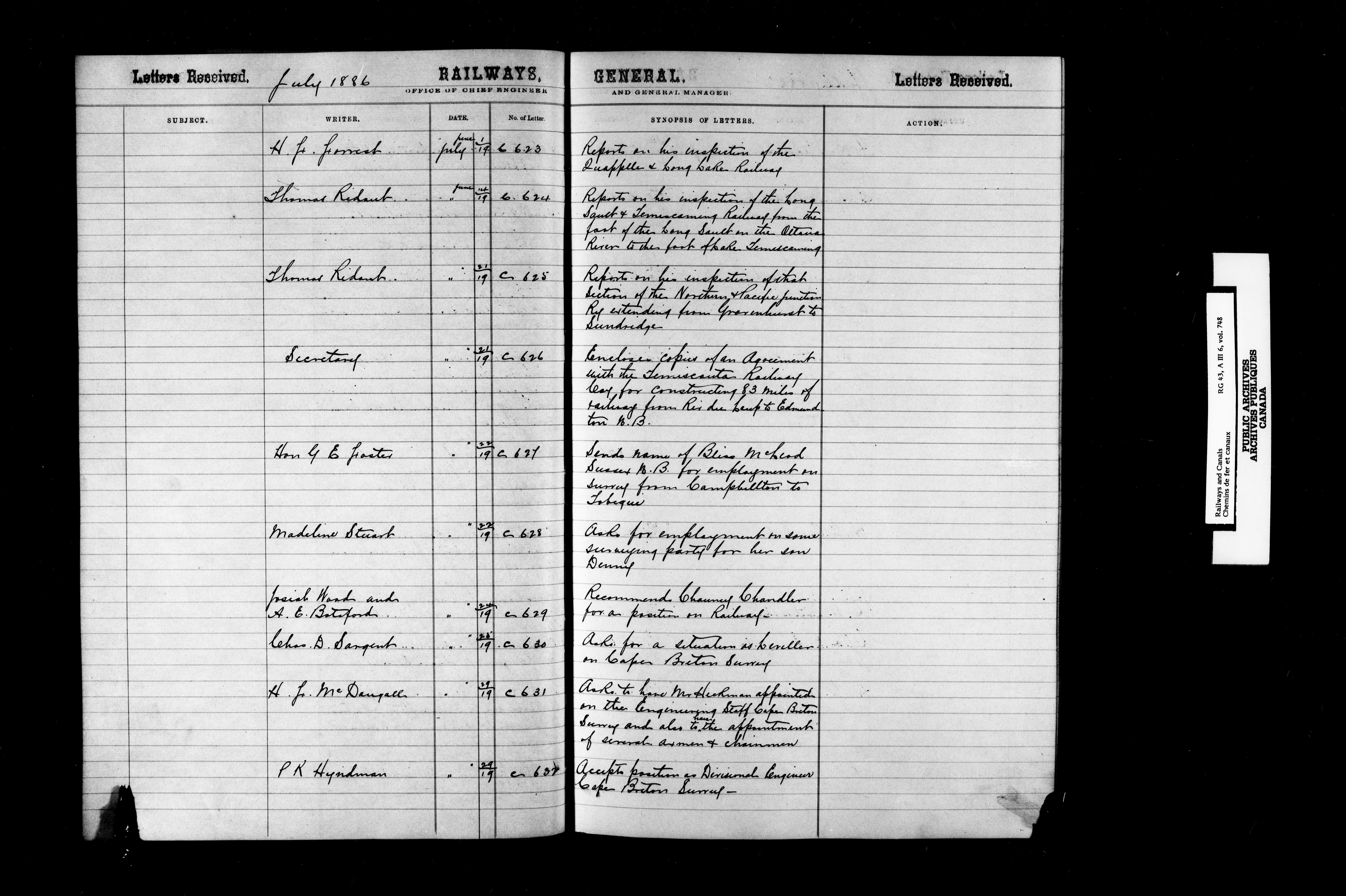 Department of Railways and Canals, Railway Branch : Office of the Chief Engineer : Correspondence - 1894