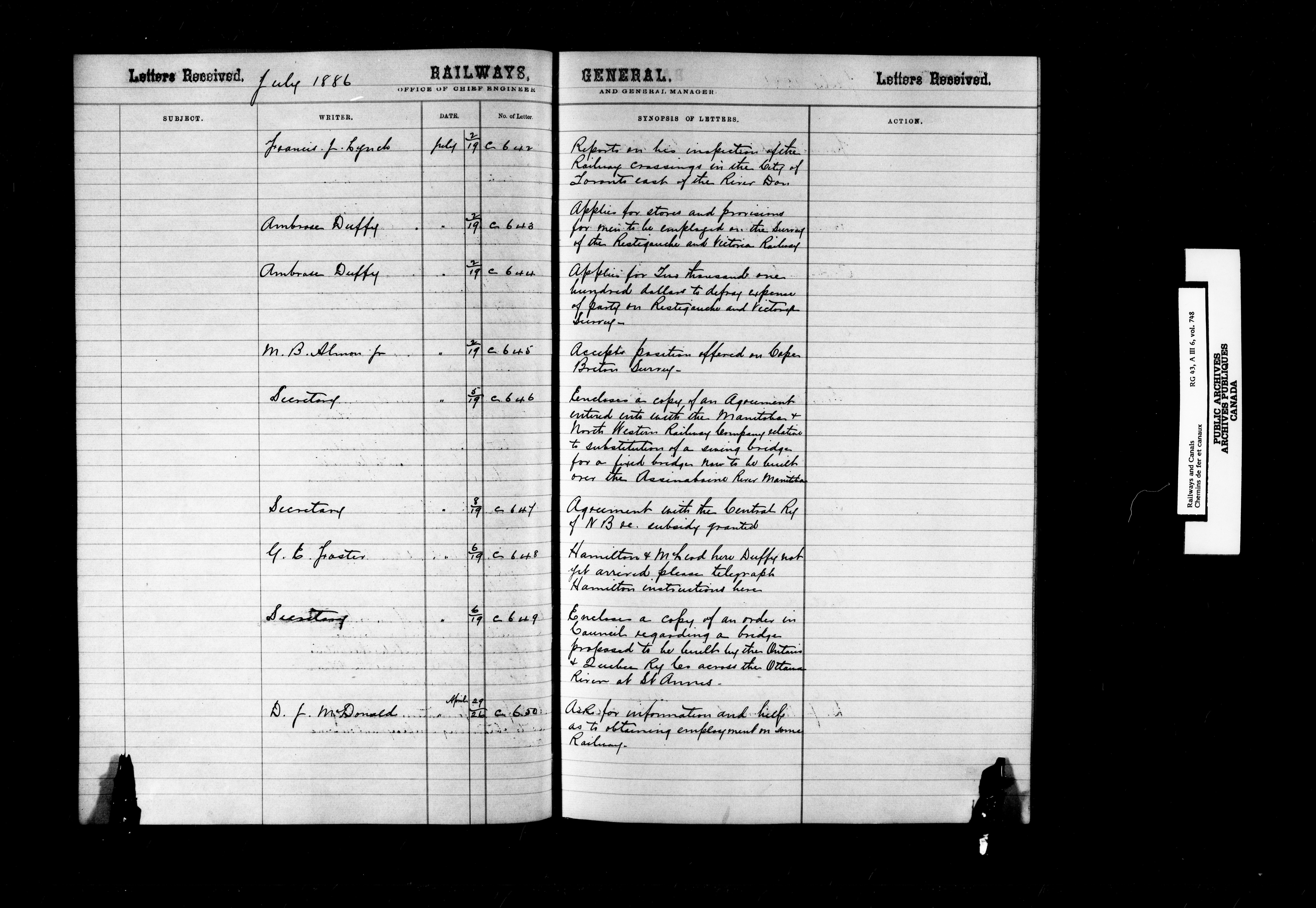 Department of Railways and Canals, Railway Branch : Office of the Chief Engineer : Correspondence - 1894