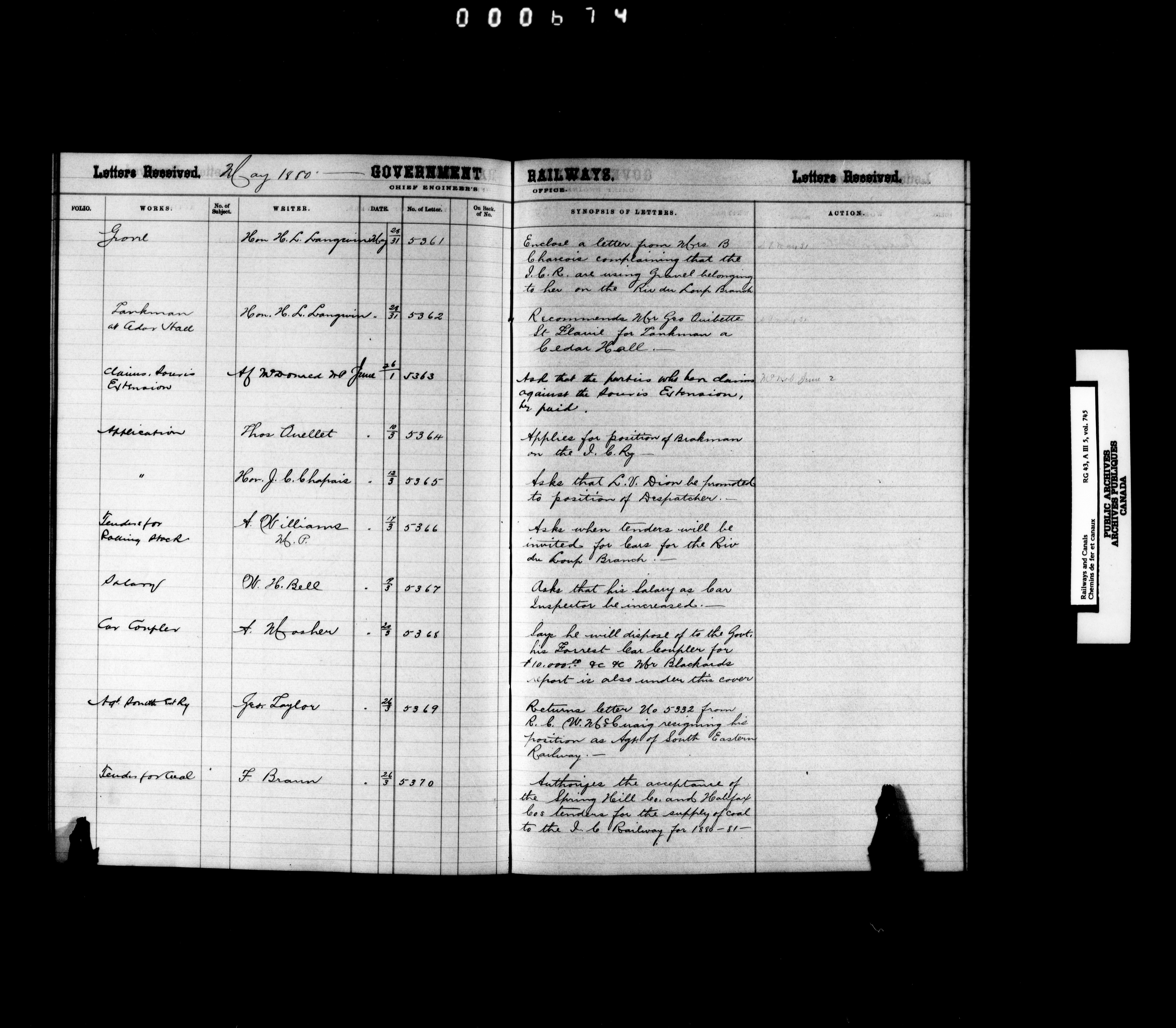 Department of Railways and Canals, Railway Branch : Office of the Chief Engineer : Correspondence - 1898