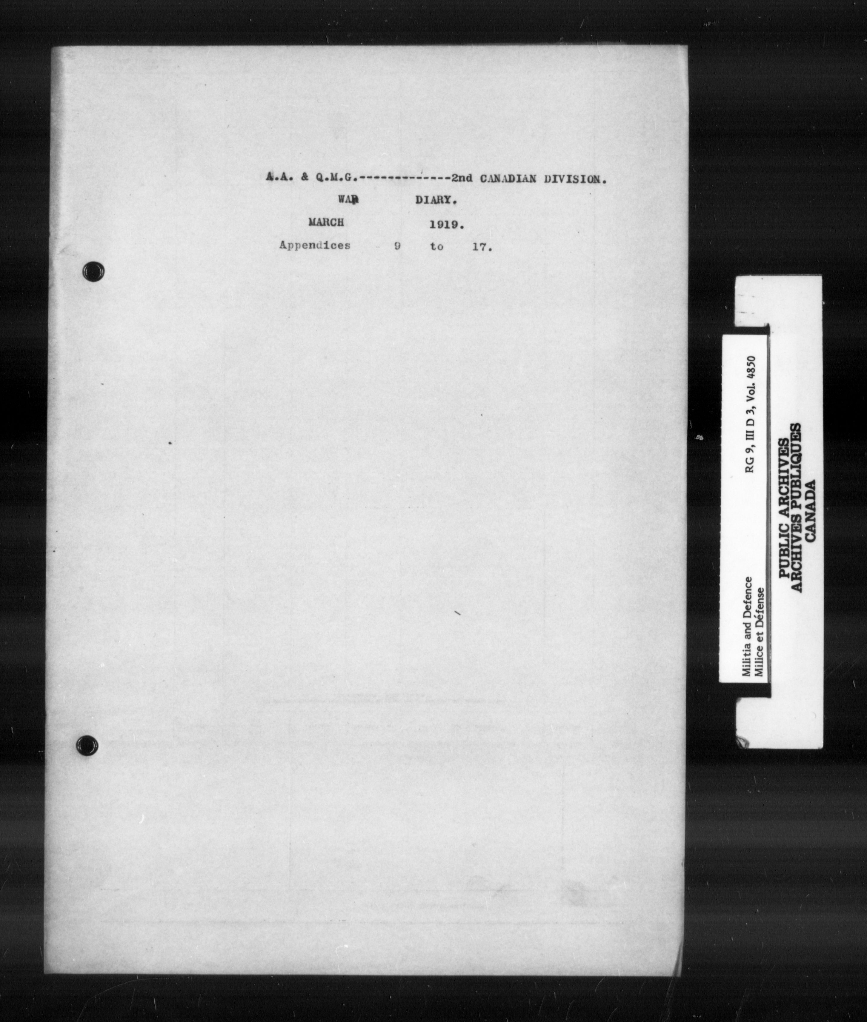 War Diaries of the First World War - 1931