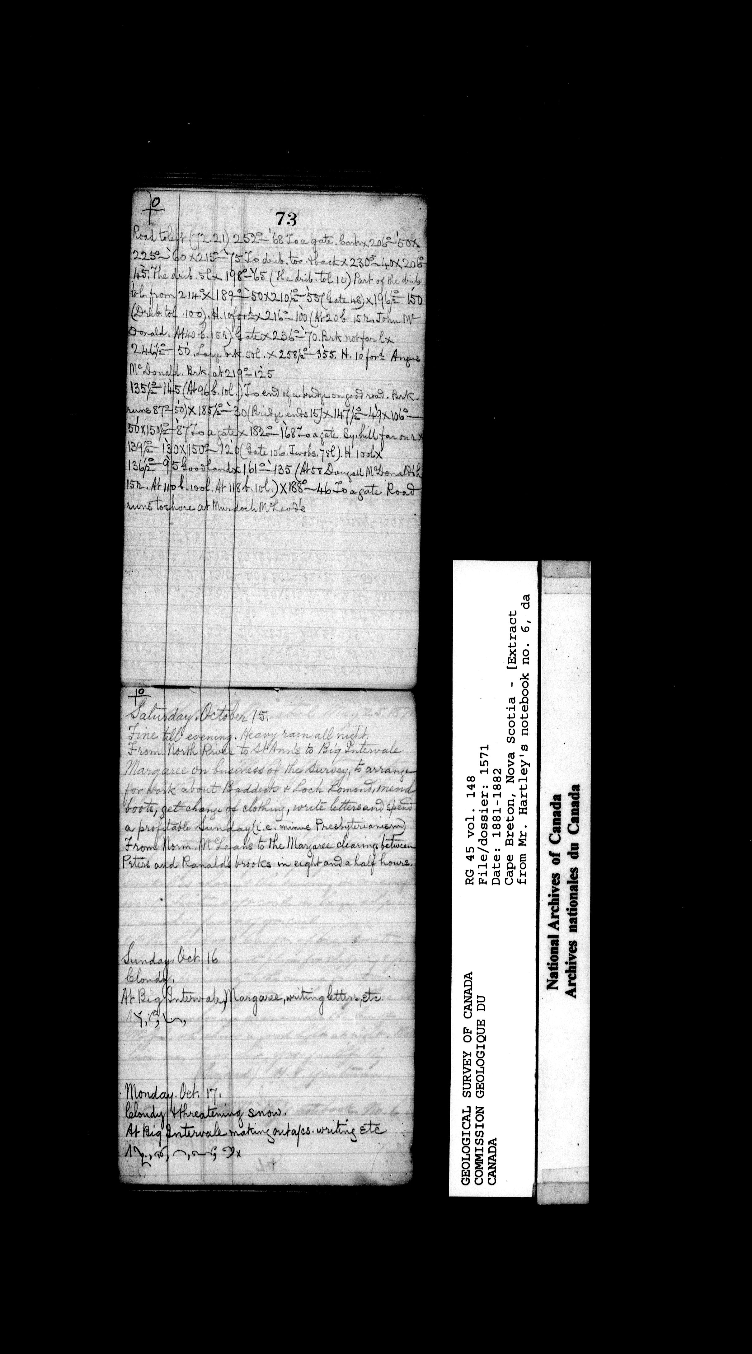 Field notebooks kept by surveyors in the employ of the Geological Survey of Canada while on field trips in various parts of Canada (1842-1900) - 20165