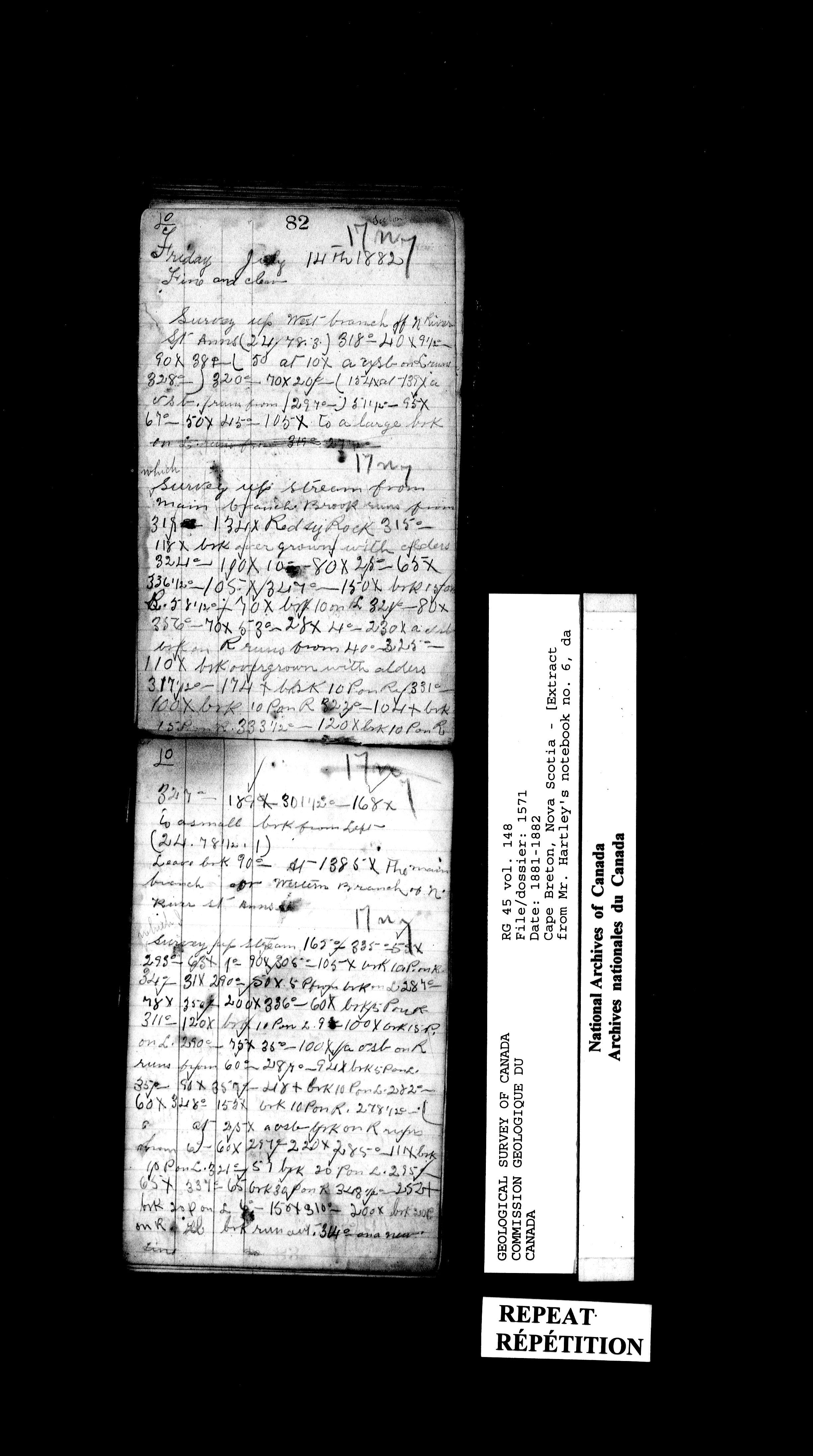 Field notebooks kept by surveyors in the employ of the Geological Survey of Canada while on field trips in various parts of Canada (1842-1900) - 20165