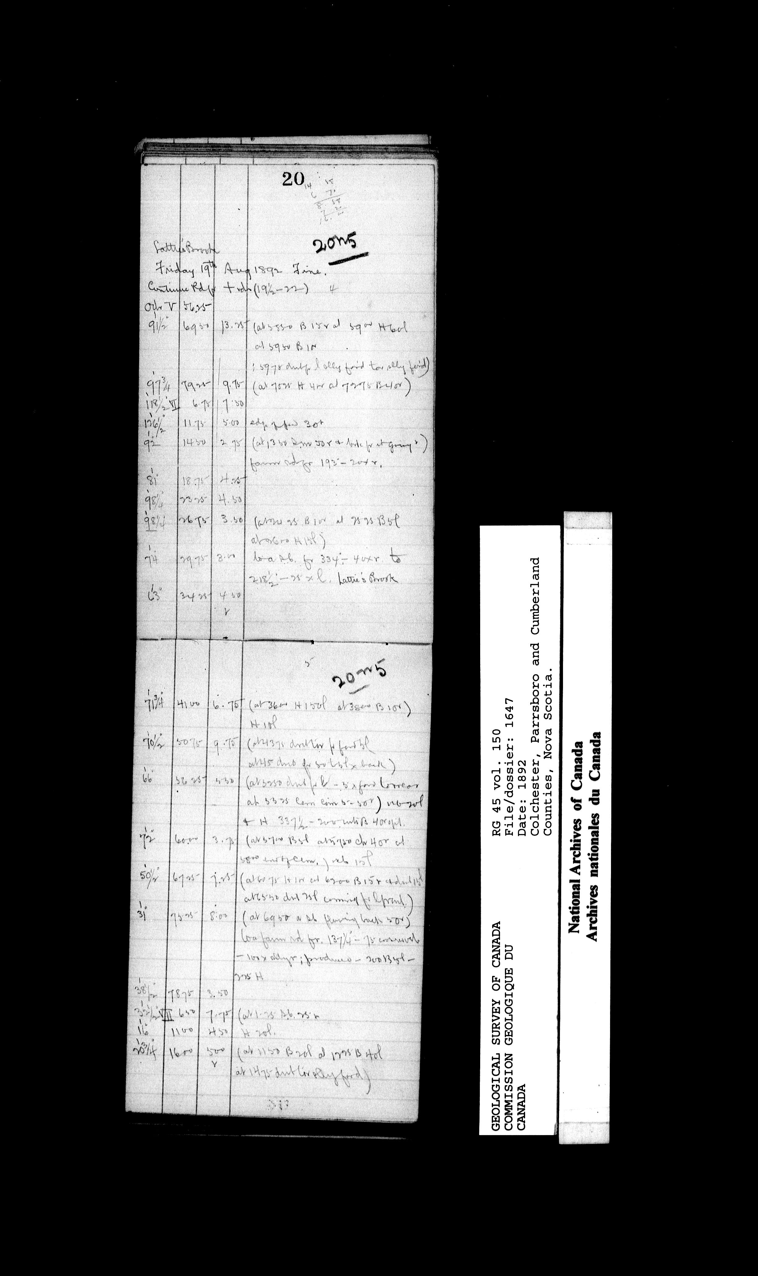Field notebooks kept by surveyors in the employ of the Geological Survey of Canada while on field trips in various parts of Canada (1842-1900) - 20172