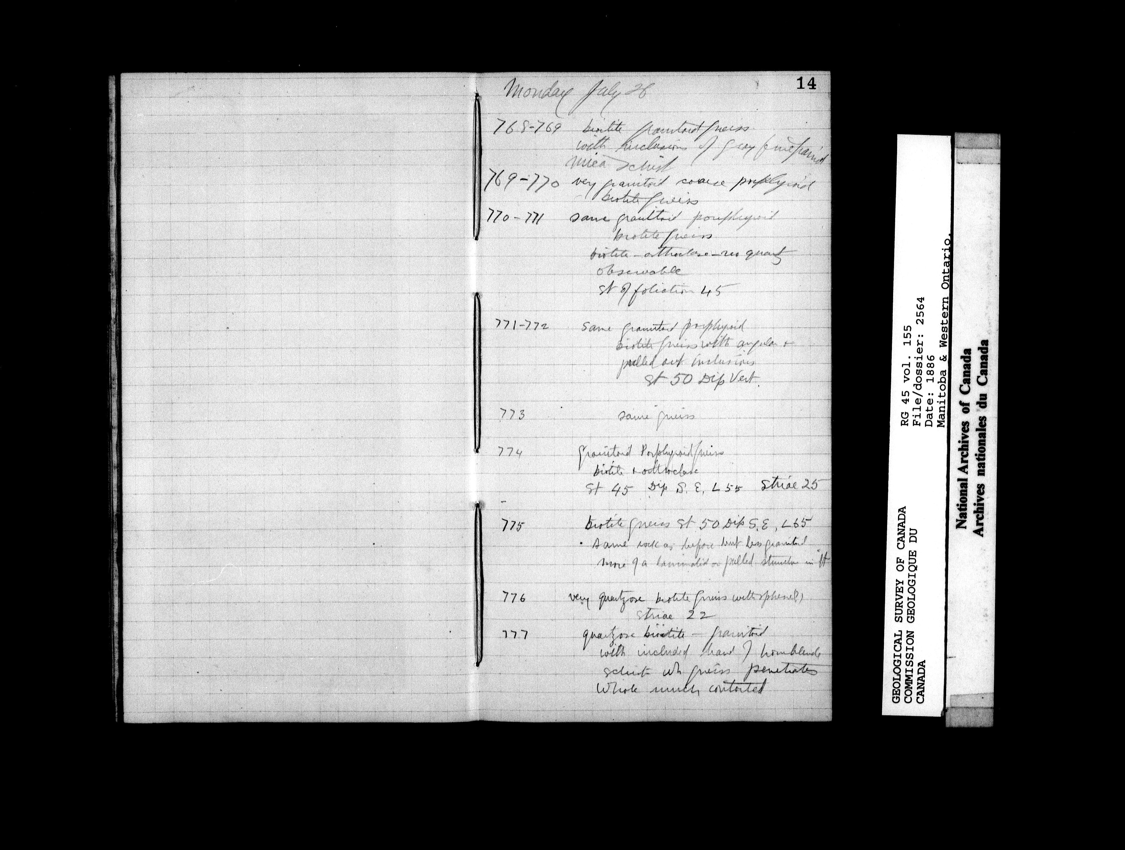 Field notebooks kept by surveyors in the employ of the Geological Survey of Canada while on field trips in various parts of Canada (1842-1900) - 20182