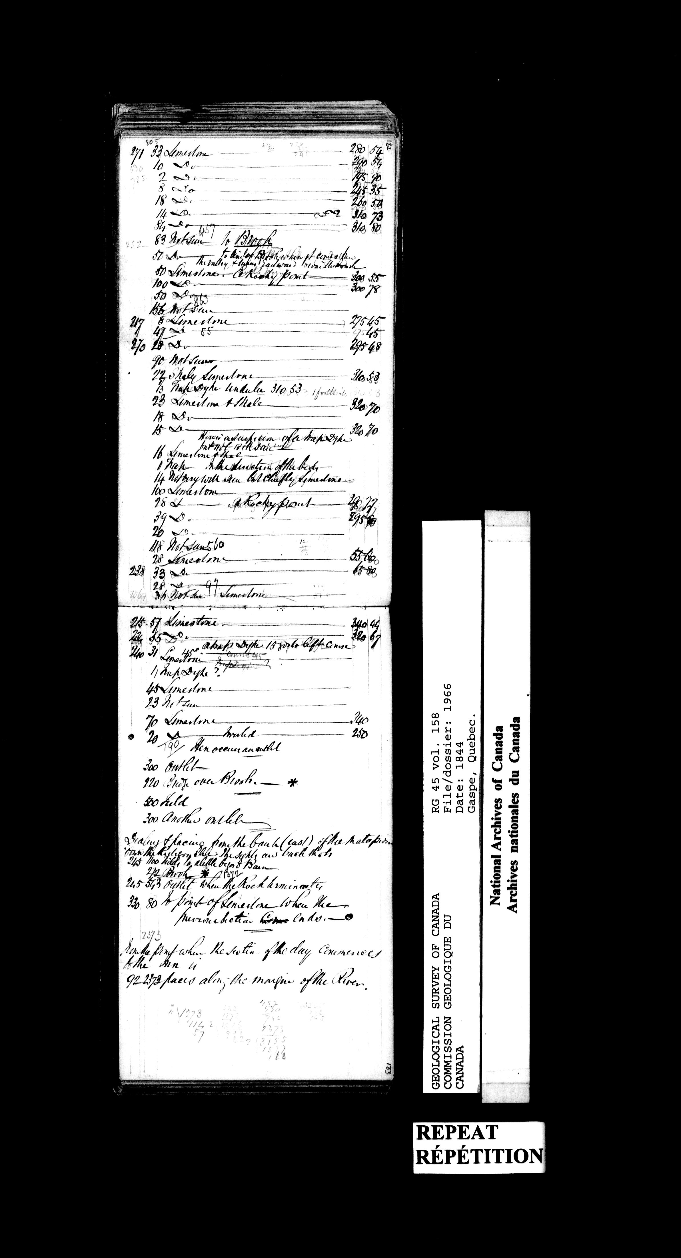 Field notebooks kept by surveyors in the employ of the Geological Survey of Canada while on field trips in various parts of Canada (1842-1900) - 20188