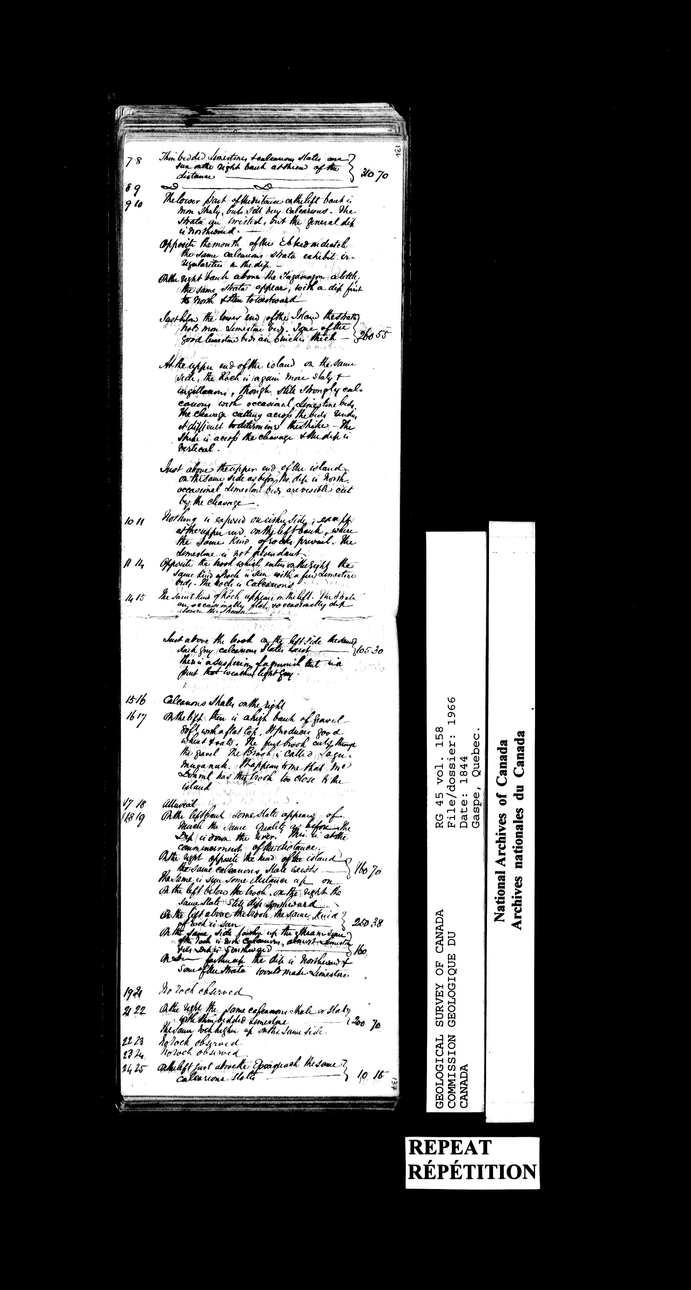 Field notebooks kept by surveyors in the employ of the Geological Survey of Canada while on field trips in various parts of Canada (1842-1900) - 20188