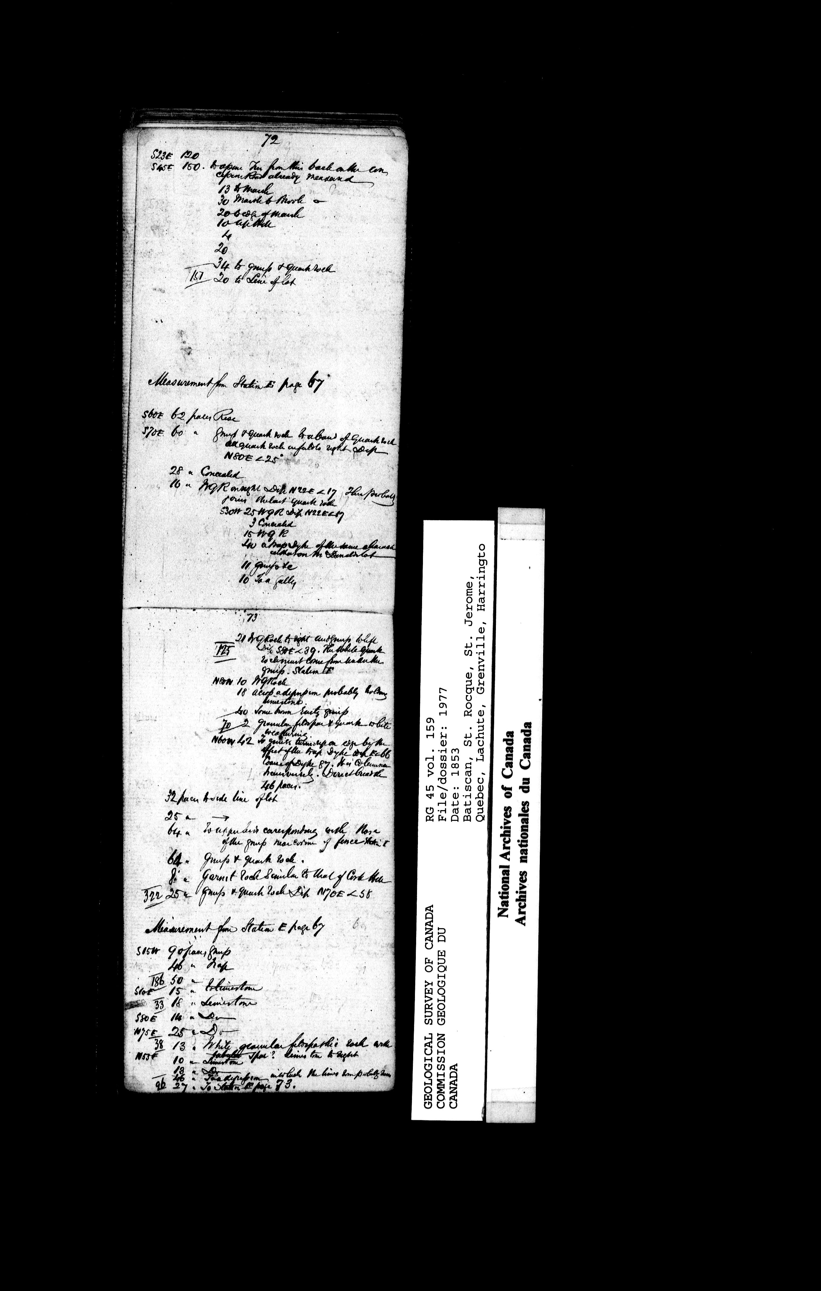 Field notebooks kept by surveyors in the employ of the Geological Survey of Canada while on field trips in various parts of Canada (1842-1900) - 20192