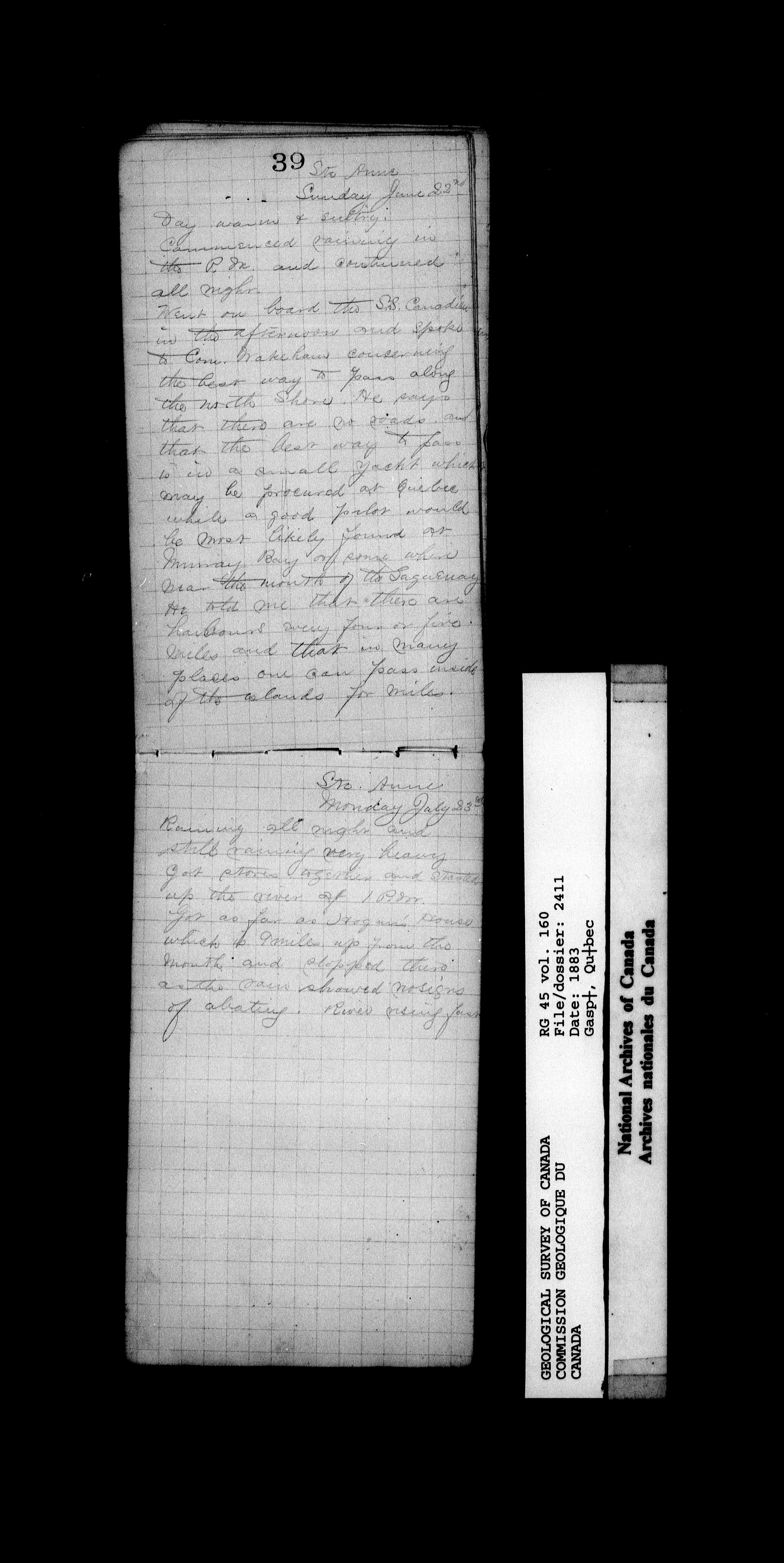 Field notebooks kept by surveyors in the employ of the Geological Survey of Canada while on field trips in various parts of Canada (1842-1900) - 20196