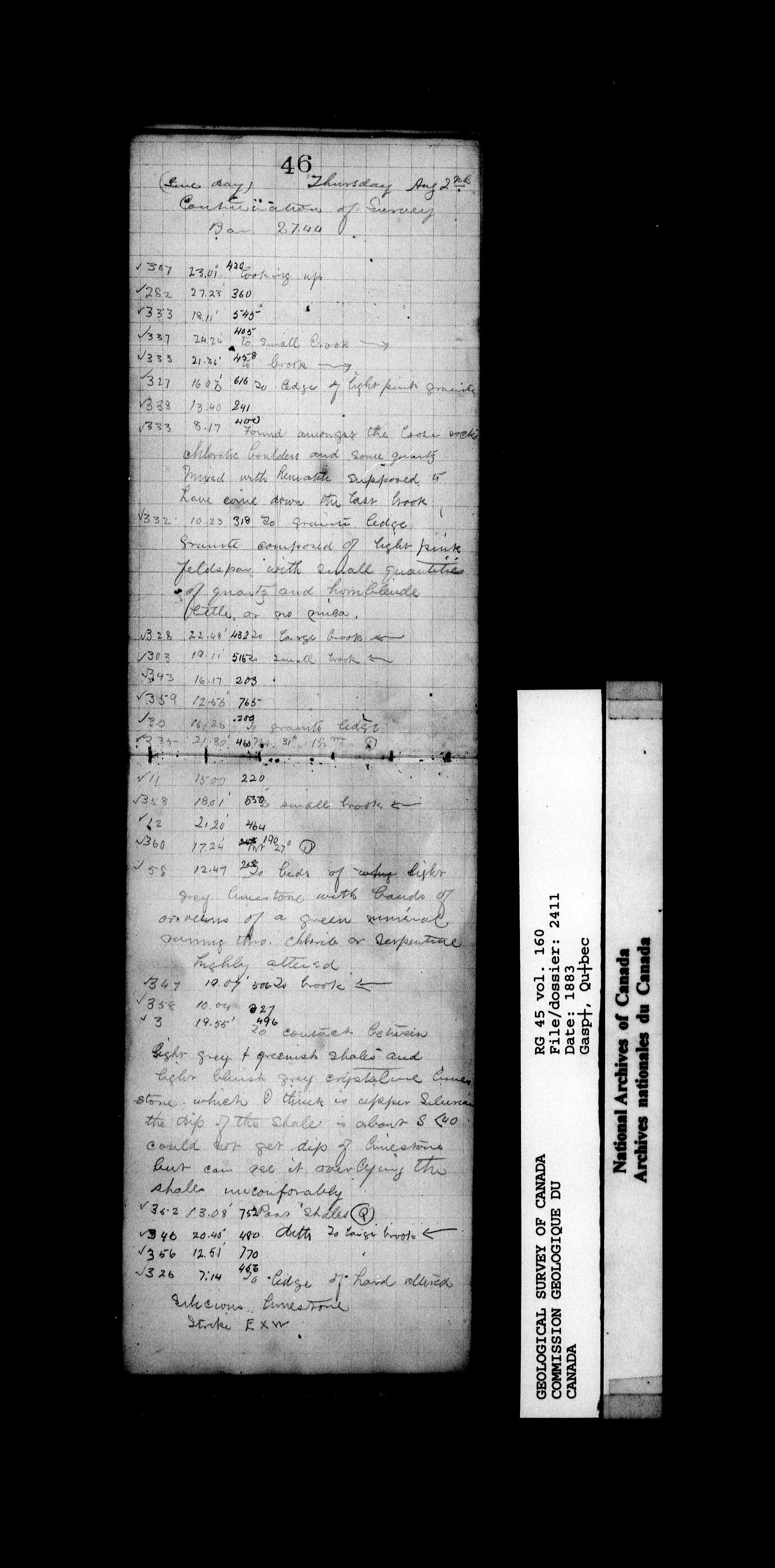 Field notebooks kept by surveyors in the employ of the Geological Survey of Canada while on field trips in various parts of Canada (1842-1900) - 20196