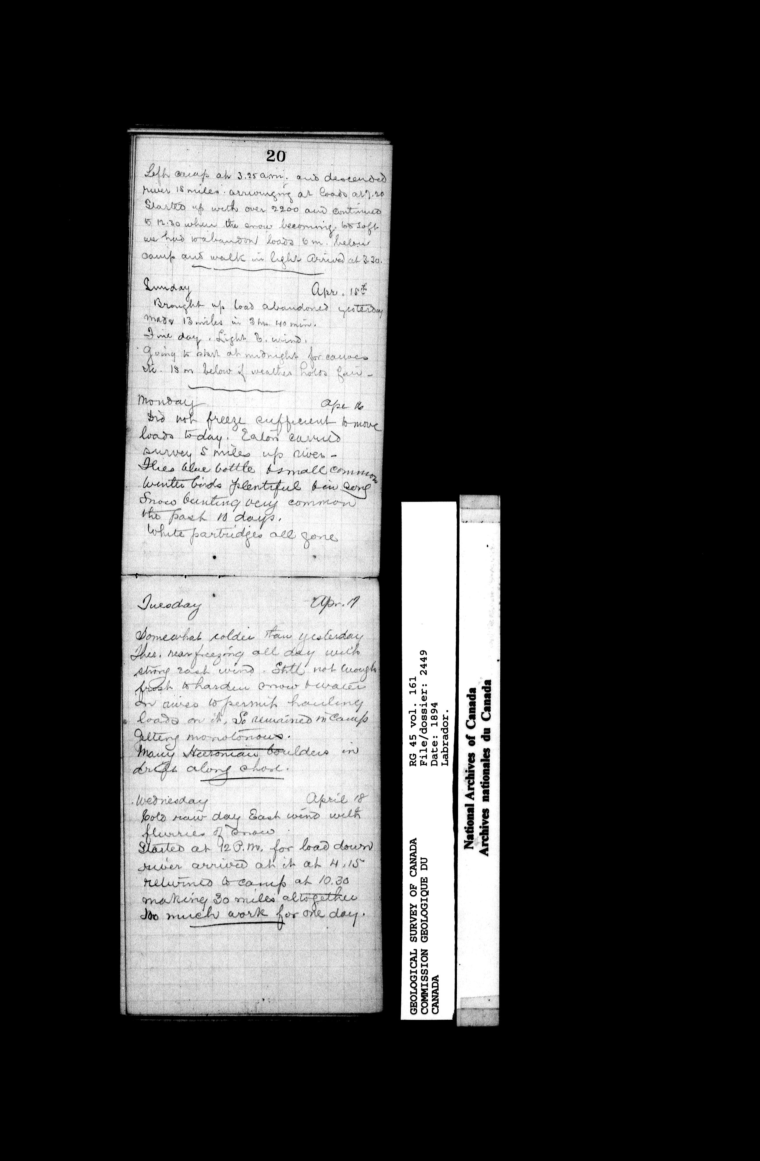 Field notebooks kept by surveyors in the employ of the Geological Survey of Canada while on field trips in various parts of Canada (1842-1900) - 20197