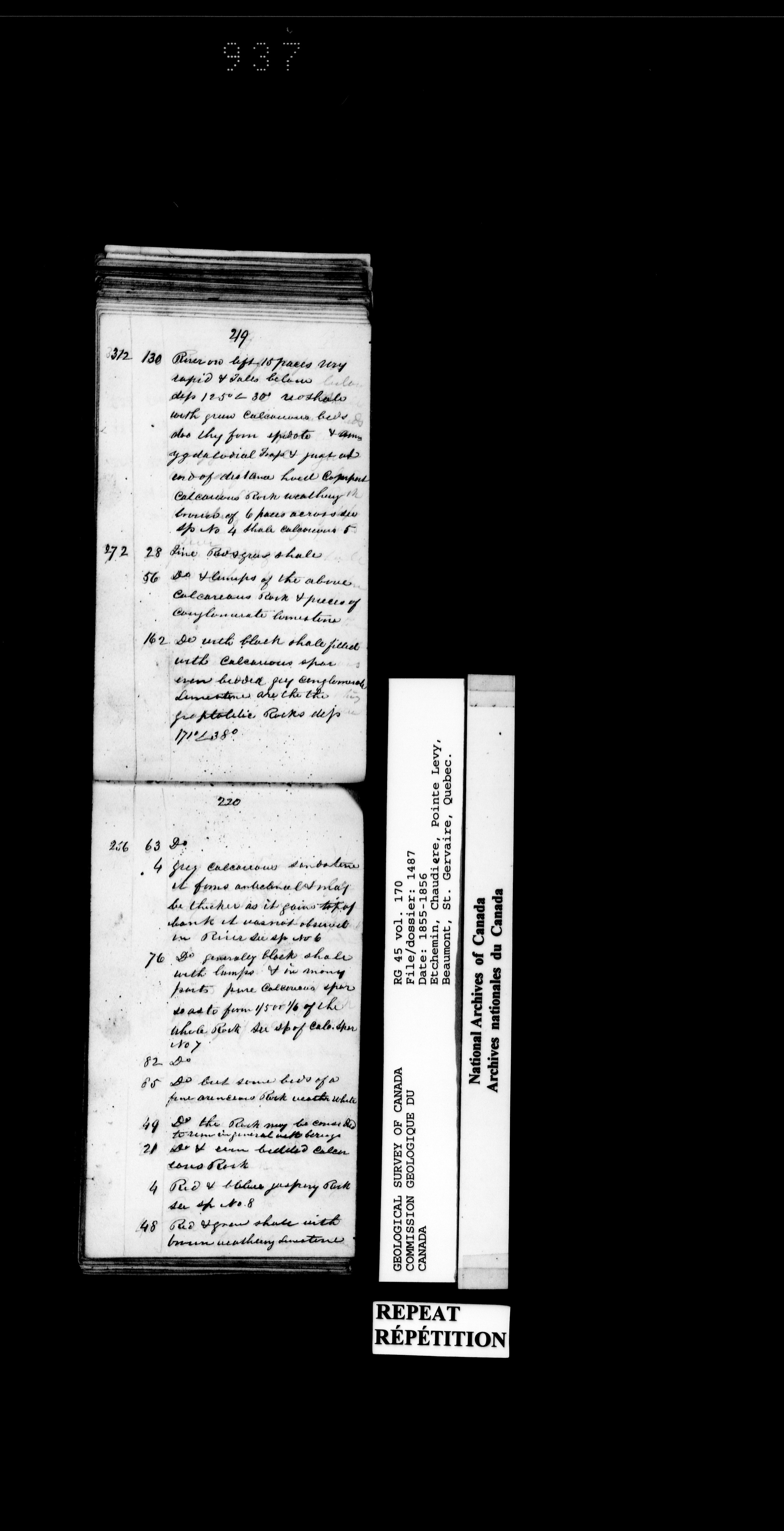 Field notebooks kept by surveyors in the employ of the Geological Survey of Canada while on field trips in various parts of Canada (1842-1900) - 20217