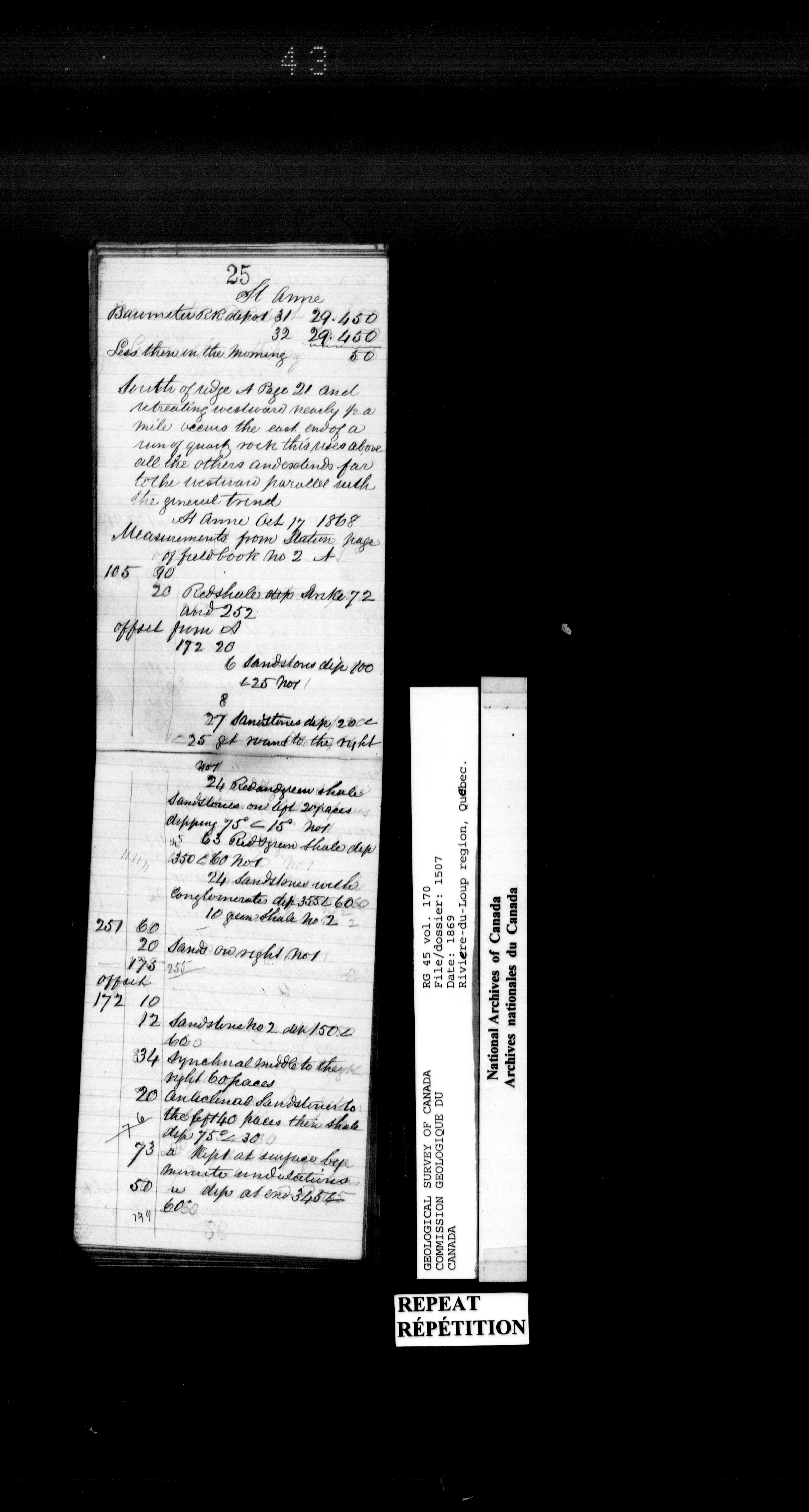 Field notebooks kept by surveyors in the employ of the Geological Survey of Canada while on field trips in various parts of Canada (1842-1900) - 20221