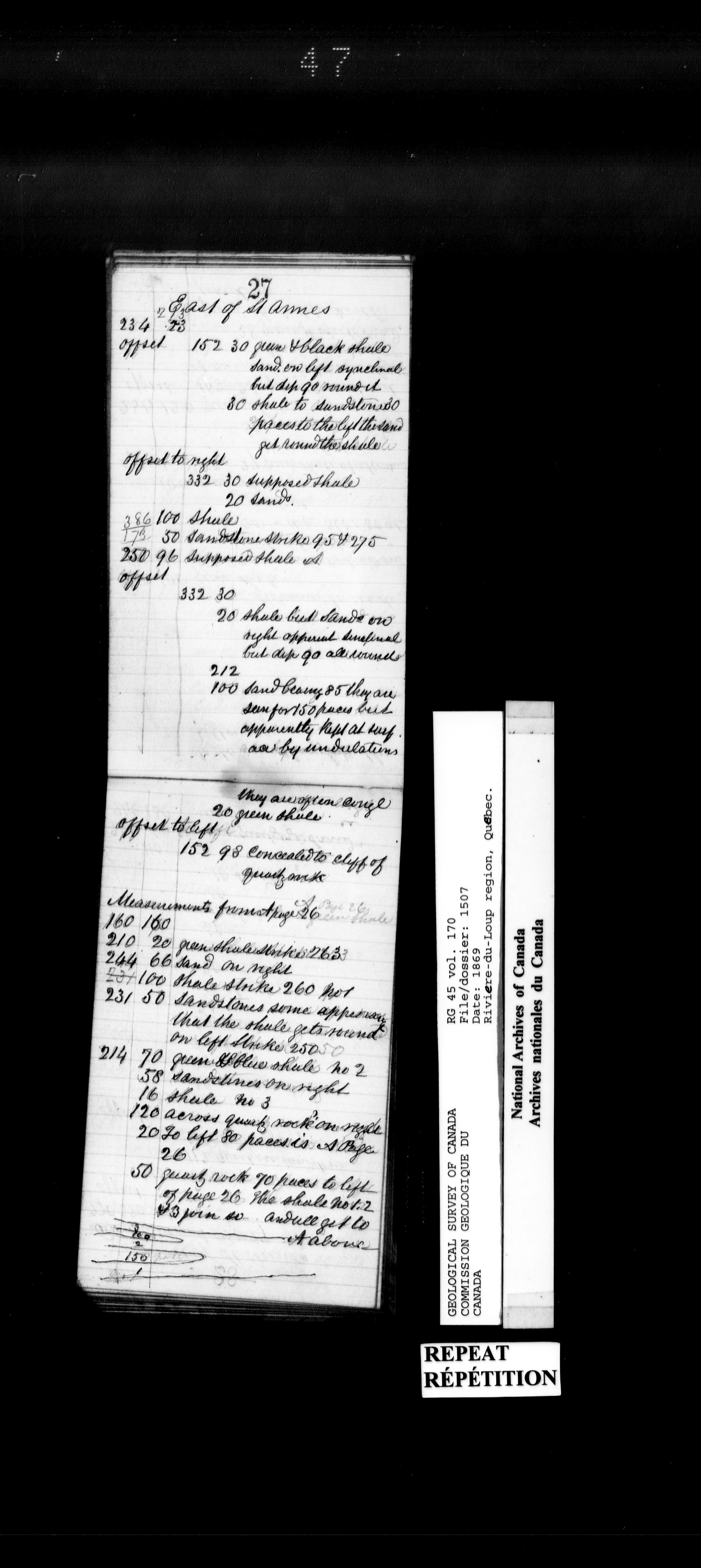 Field notebooks kept by surveyors in the employ of the Geological Survey of Canada while on field trips in various parts of Canada (1842-1900) - 20221