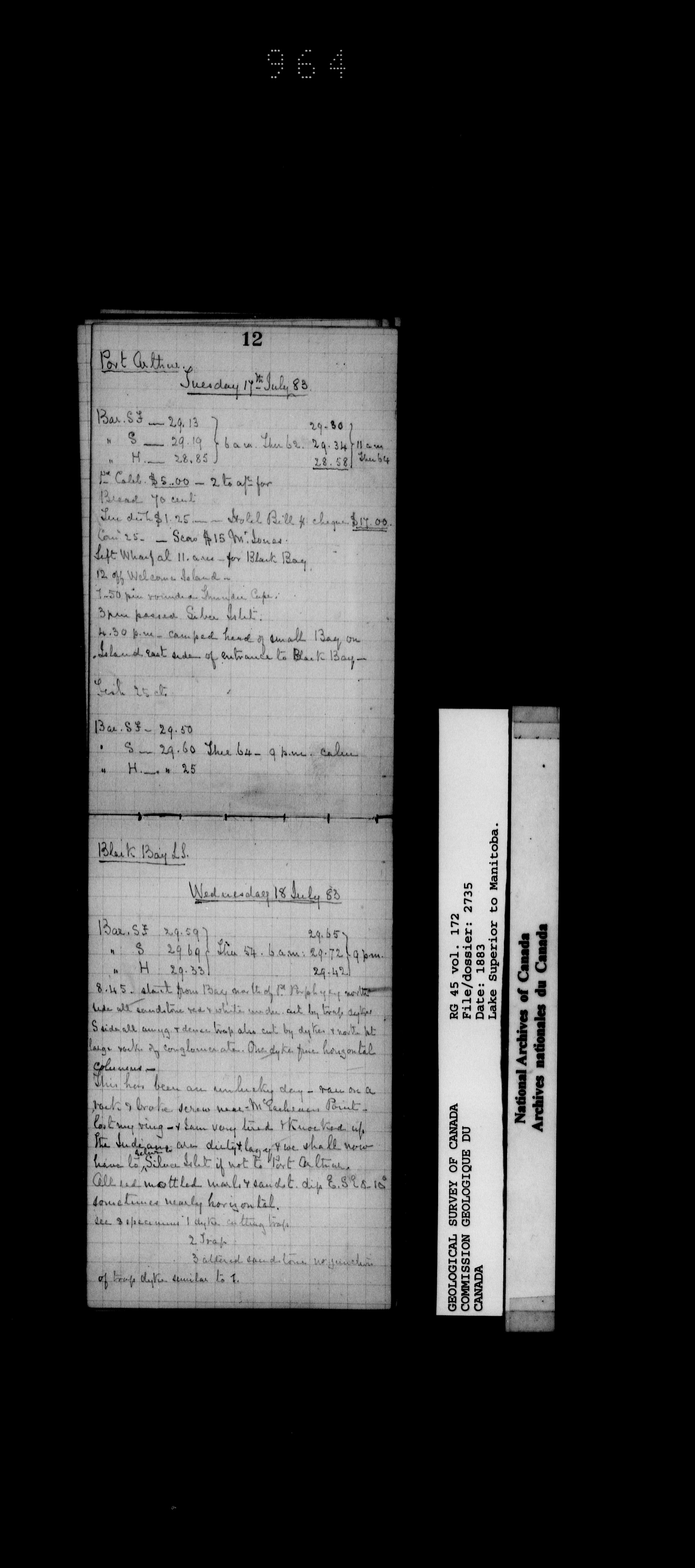 Field notebooks kept by surveyors in the employ of the Geological Survey of Canada while on field trips in various parts of Canada (1842-1900) - 20224